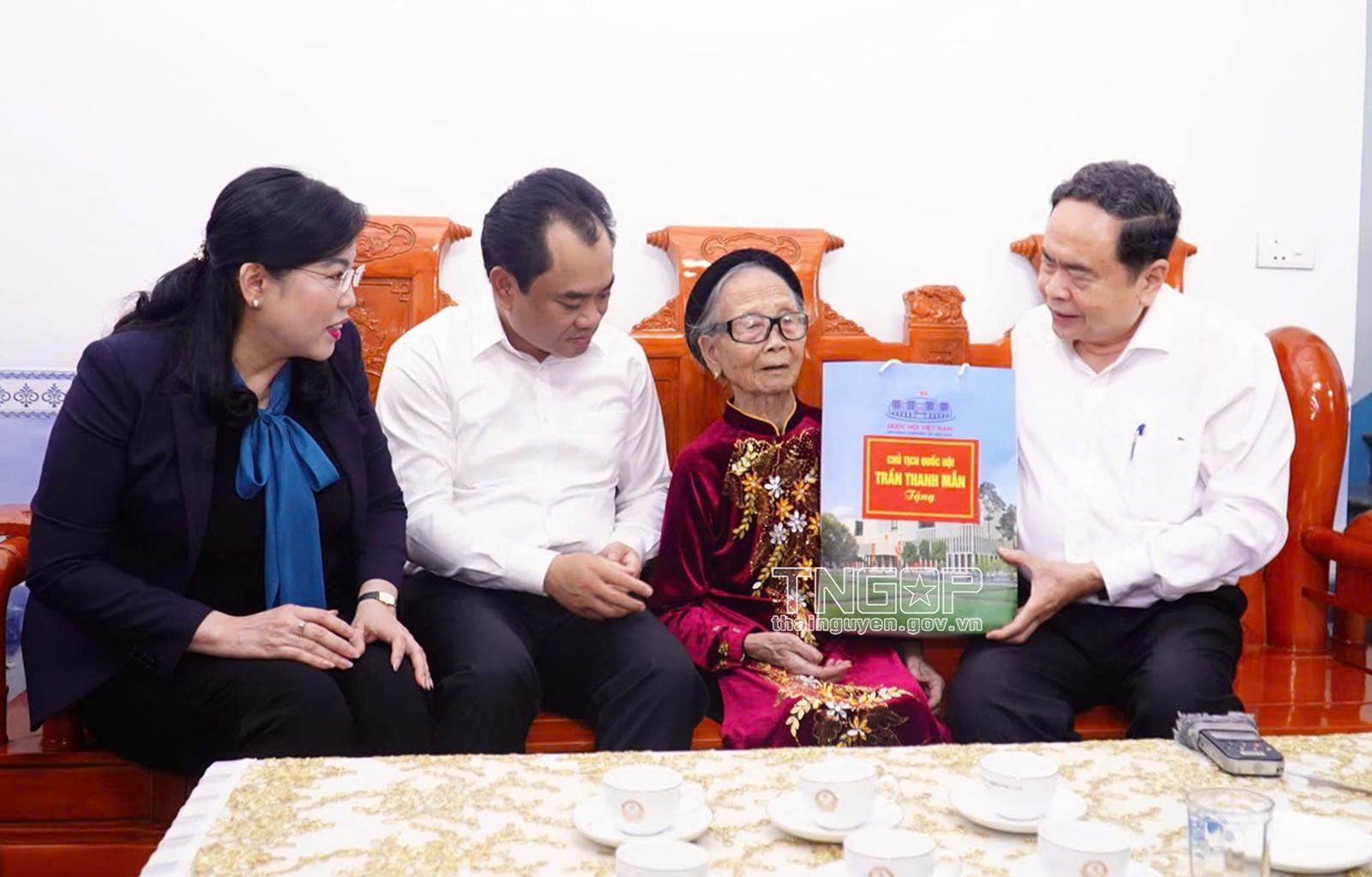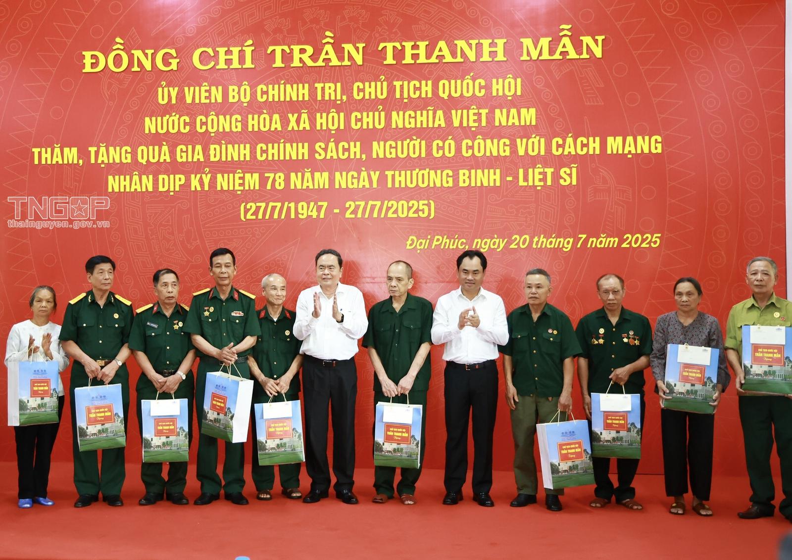 Nhân dịp này, Chủ tịch Quốc hội Trần Thanh Mẫn cùng các thành viên trong Đoàn đã trao tặng 100 suất quà cho người có công và thân nhân người có công với cách mạng trên địa bàn tỉnh Thái Nguyên.