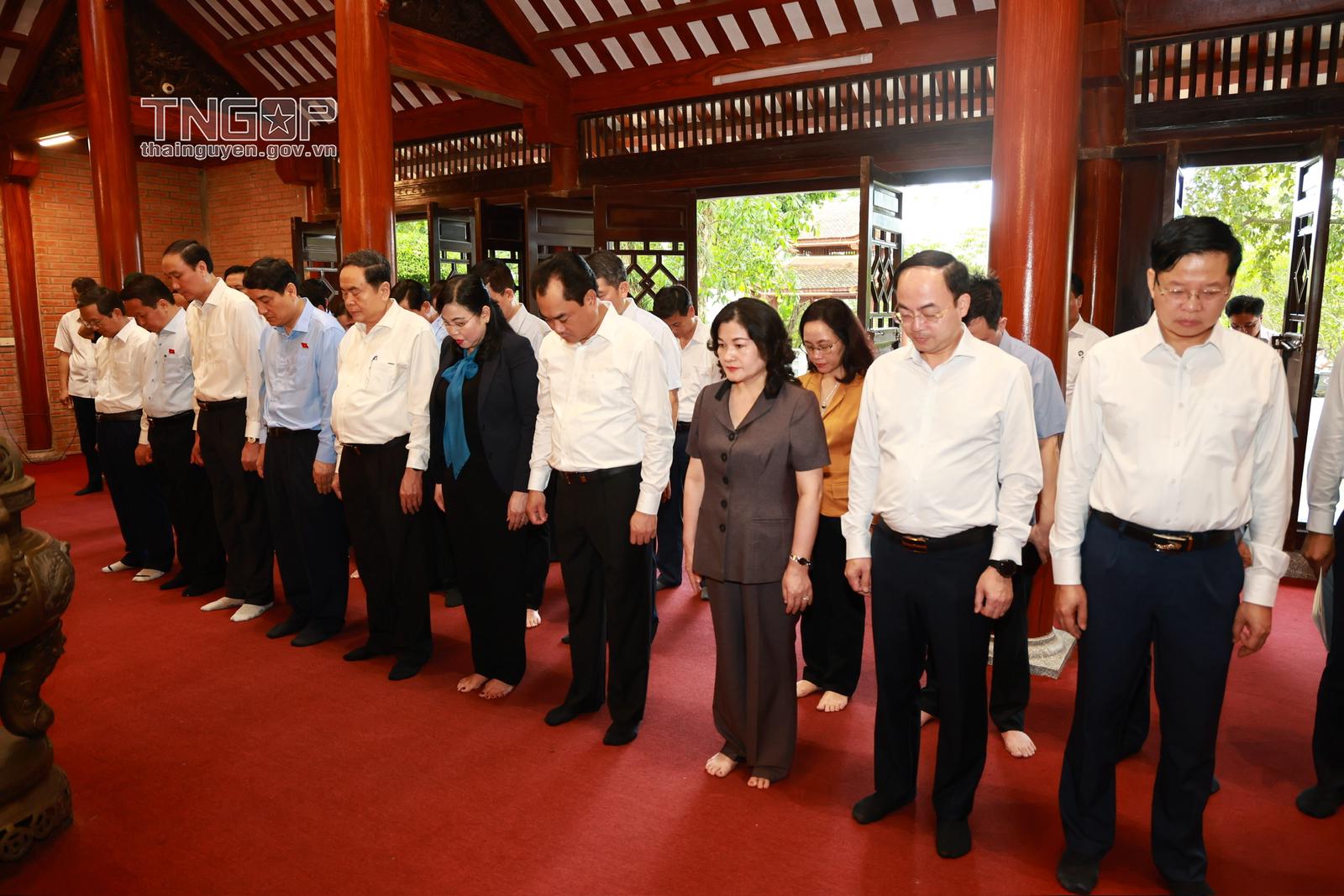 Sau Lễ dâng hương, tại hội trường Khu di tích lịch sử quốc gia 27-7, Bí thư Tỉnh ủy Thái Nguyên Trịnh Việt Hùng đã báo cáo với Chủ tịch Quốc hội và Đoàn công tác về tình hình phát triển kinh tế - xã hội, công tác chăm lo cho các gia đình chính sách, người có công với cách mạng trên địa bàn tỉnh.