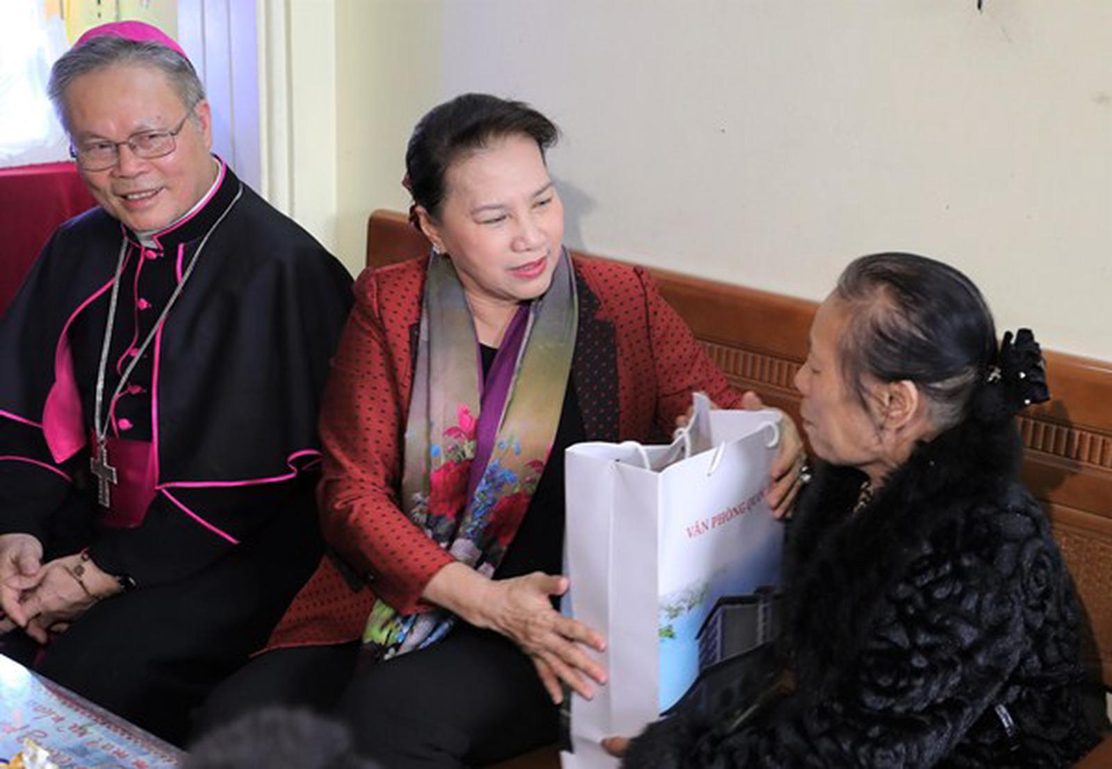 Chủ tịch Quốc hội Nguyễn Thị Kim Ngân cũng tới thăm và tặng quà một số gia đình giáo dân tiêu biểu tại TP Thanh Hóa.