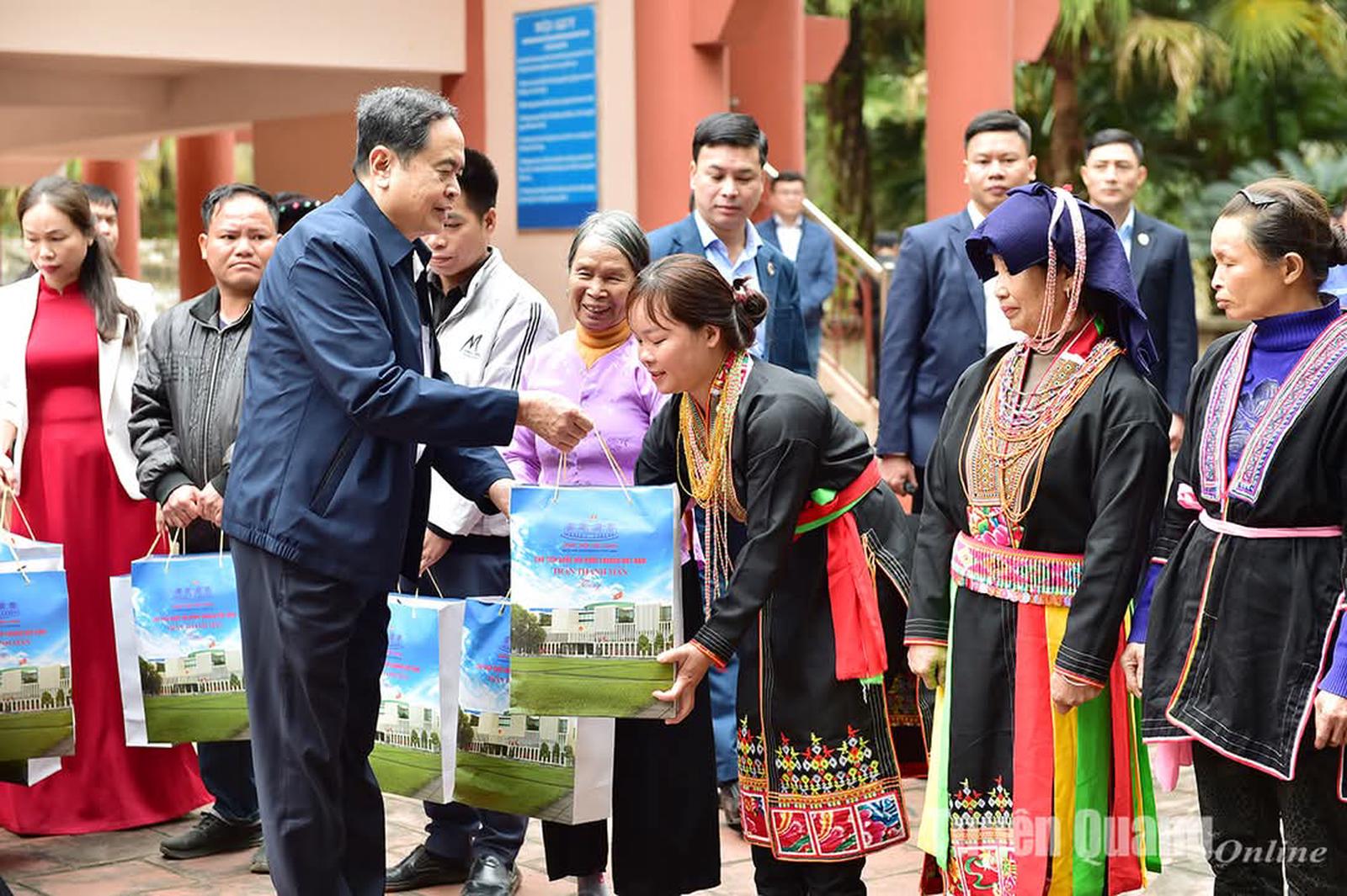 Chủ tịch Quốc hội Trần Thanh Mẫn tặng quà cho người dân xã Trung Yên, huyện Sơn Dương