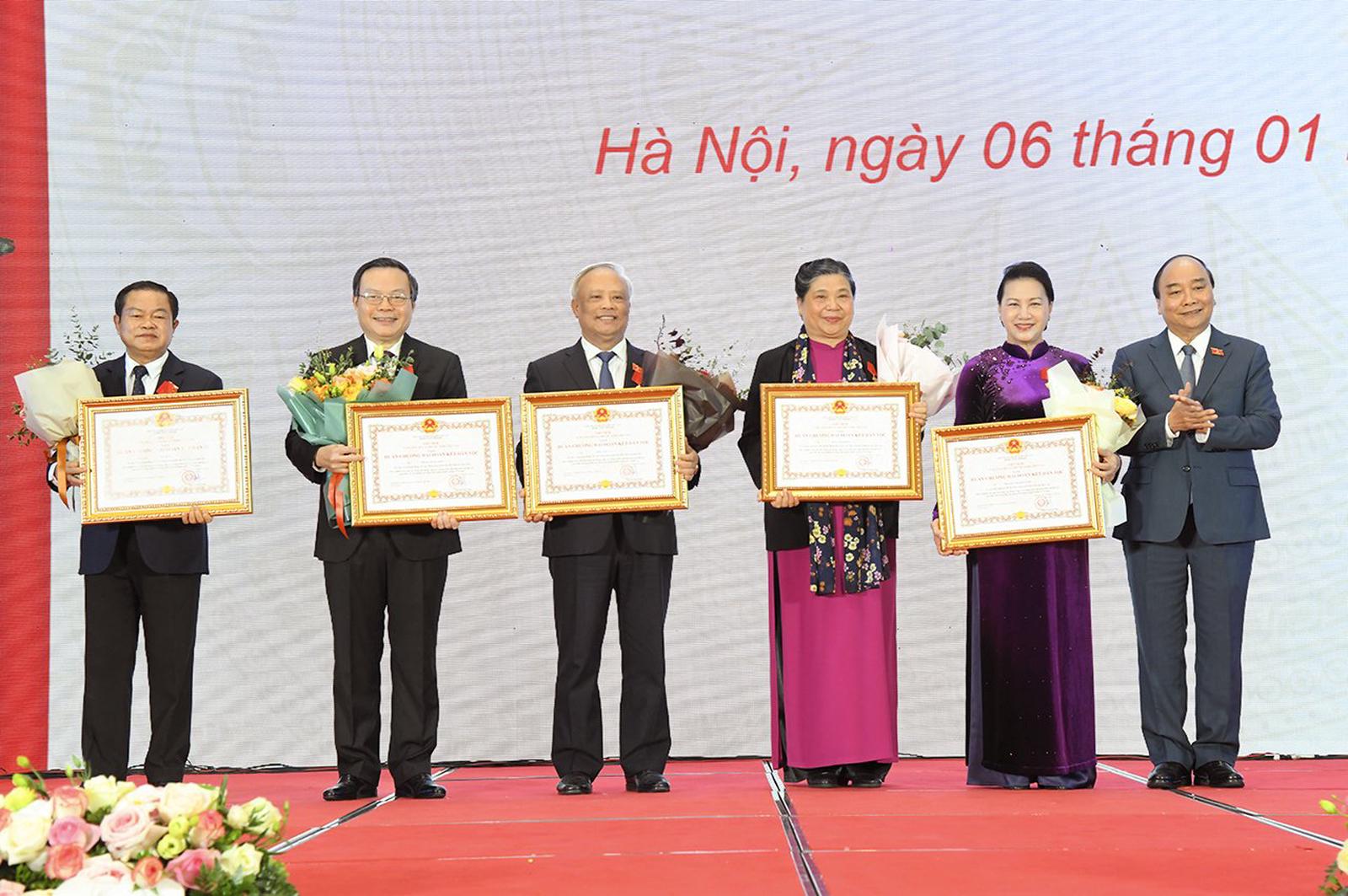 Lãnh đạo Quốc hội nhận Huân chương Đại đoàn kết dân tộc có Chủ tịch Quốc hội Nguyễn Thị Kim Ngân và các Phó Chủ tịch Quốc hội là các ông, bà: Tòng Thị Phóng; Uông Chu Lưu, Phùng Quốc Hiển, Đỗ Bá Tỵ.