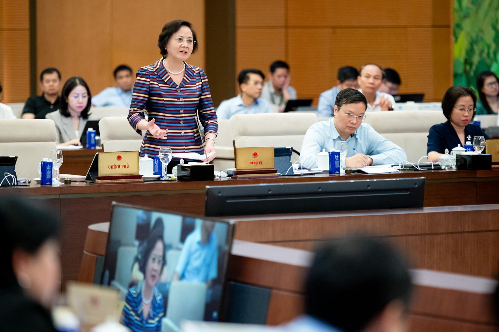Bộ trưởng Bộ Nội vụ Phạm Thị Thanh Trà cho biết, dự thảo luật quy định theo hướng tăng nhiều hơn thẩm quyền của chủ tịch UBND. Ảnh: P.Thắng