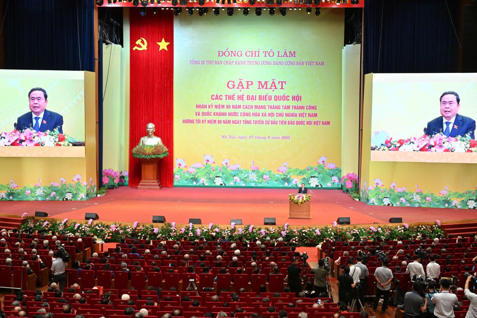 Sáng nay (27/8), Tổng Bí thư Tô Lâm, cùng các lãnh đạo Đảng, Nhà nước gặp mặt với gần 2.000 đại biểu Quốc hội qua các thời kỳ lần đầu tiên được tổ chức.