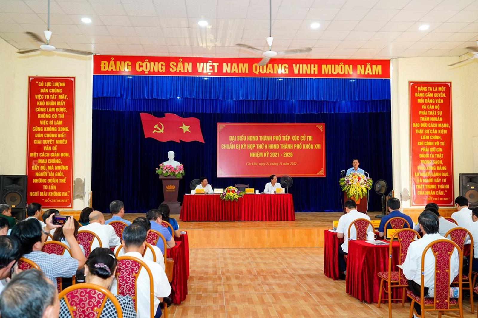 Tại buổi tiếp xúc cử tri bày tỏ đồng tình và phấn khởi trước những kết quả phát triển kinh tế xã hội của thành phố và huyện trong thời gian qua, đồng thời cử tri huyện Cát Hải kiến nghị thành phố quan tâm xem xét giải quyết hỗ trợ chênh lệch giữa giá đất tại nơi tái định cư so với giá đất ở phải giải phóng mặt bằng; chủ trương chuyển đổi mục đích sử dụng đất, tạo điều kiện cho nhân dân phát triển mô hình du lịch cộng đồng...