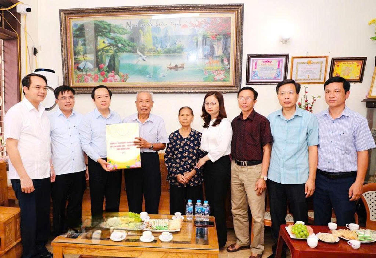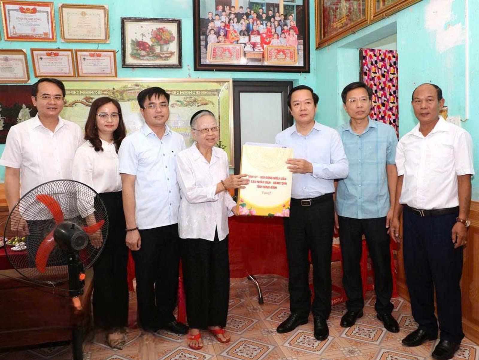 Chủ tịch UBND tỉnh Ninh Bình thăm, tặng quà gia đình bà Trần Thị Hồng Chuy, vợ liệt sĩ Nguyễn Văn Bi ở thôn Hoàng Mẫu. Ảnh: BNB