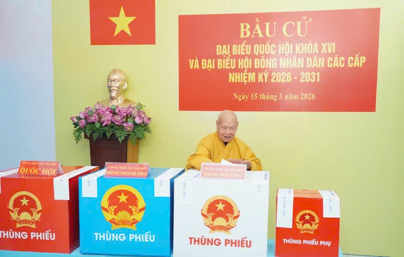 Tại TP HCM, Trưởng lão Hòa thượng Thích Thiện Nhơn, Phó pháp Chủ, Chủ tịch Hội đồng Trị sự GHPGVN đã đến điểm bỏ phiếu nơi địa phương cư trú bầu cử đại biểu Quốc hội khóa XVI và đại biểu Hội đồng Nhân dân các cấp nhiệm kỳ 2026-2031.