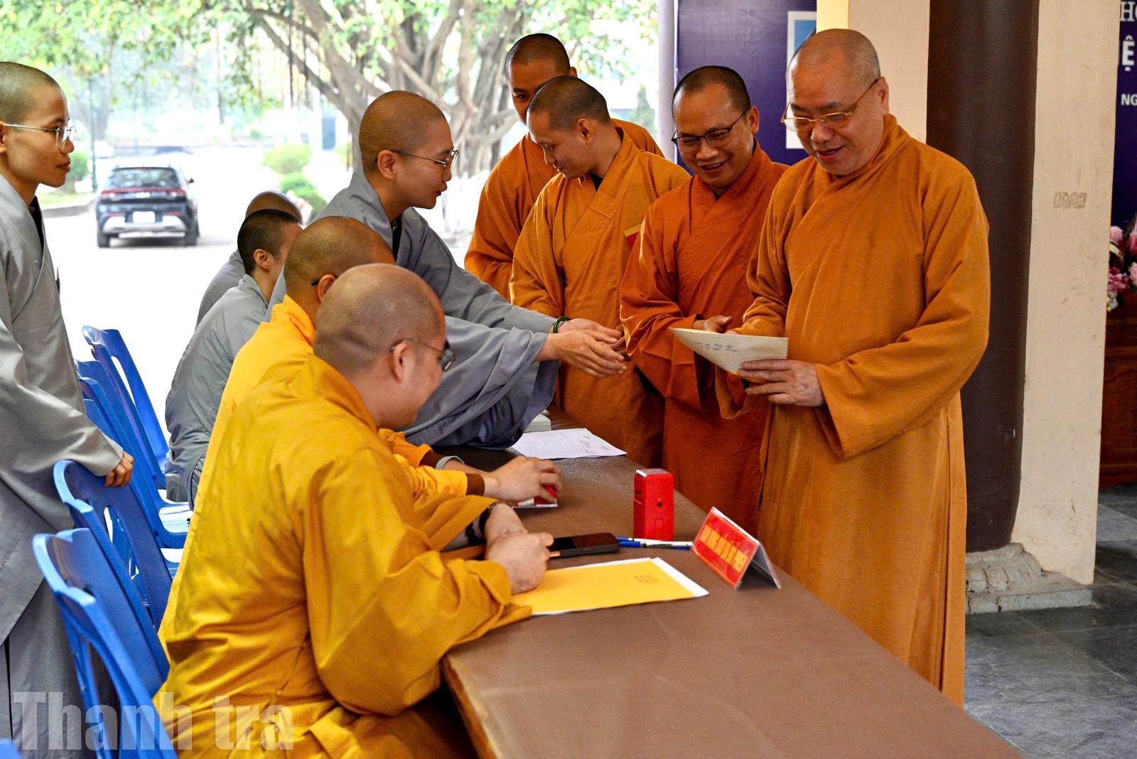 Chư tôn đức cầm trên tay lá phiếu của mình....