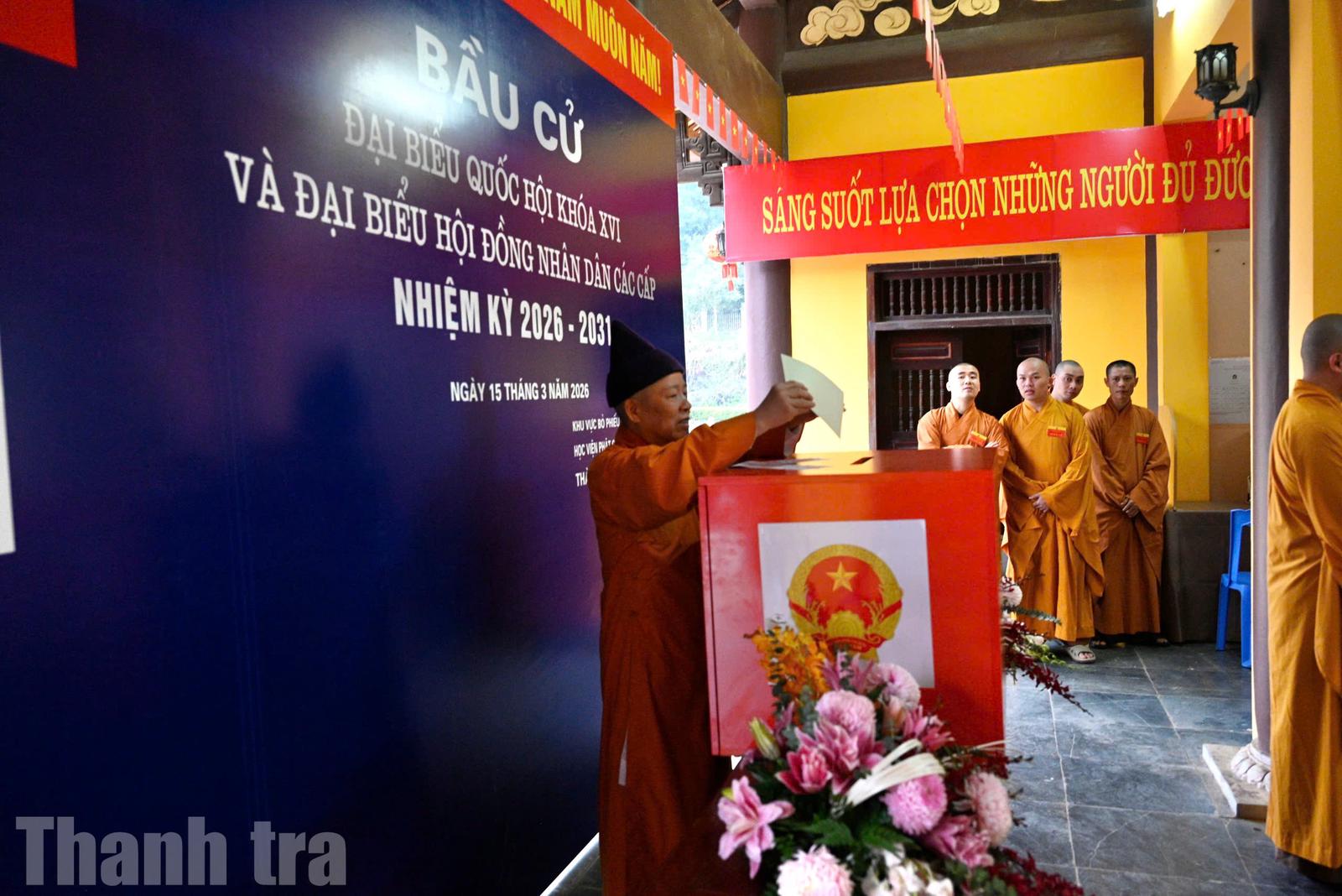 (Thanh tra) - Sáng 15/3, đông đảo chư tôn đức Giáo hội Phật giáo Việt Nam (GHPG) đã đến điểm bỏ phiếu nơi địa phương cư trú bầu cử đại biểu Quốc hội khóa XVI và đại biểu Hội đồng Nhân dân các cấp nhiệm kỳ 2026-2031.