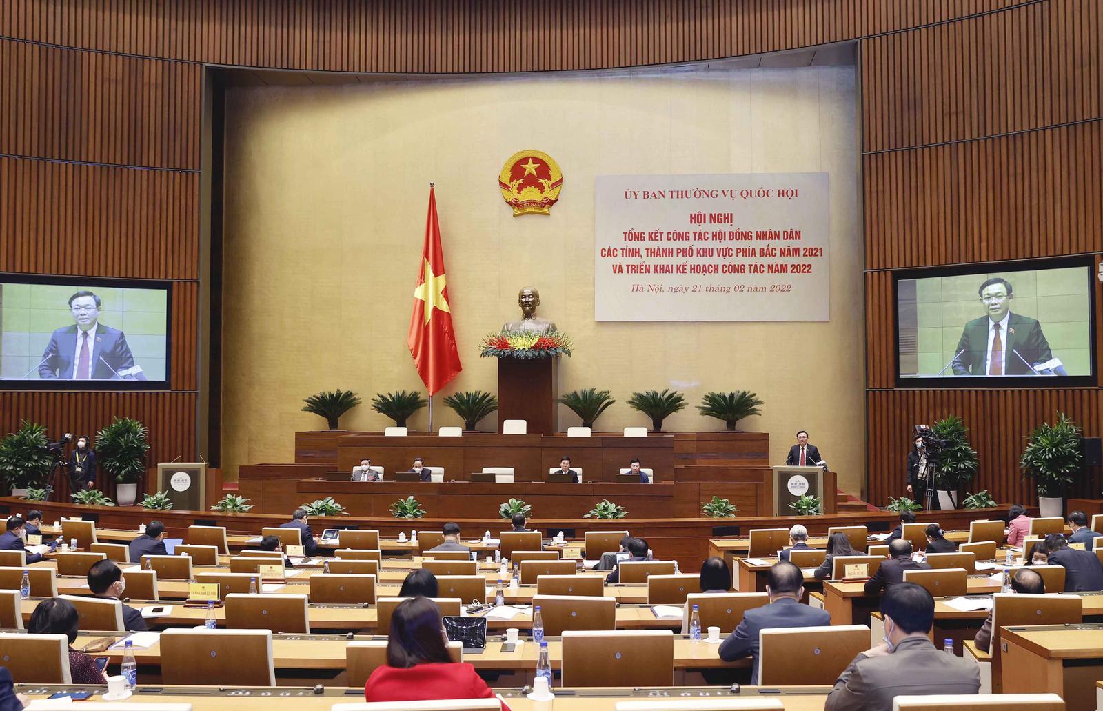 Sáng 21/2, Chủ tịch Quốc hội Vương Đình Huệ và các Phó Chủ tịch Quốc hội chủ trì hội nghị tổng kết công tác HĐND năm 2021 và triển khai kế hoạch công tác năm 2022 của các tỉnh, TP khu vực phía Bắc (gồm 25 tỉnh, TP).
