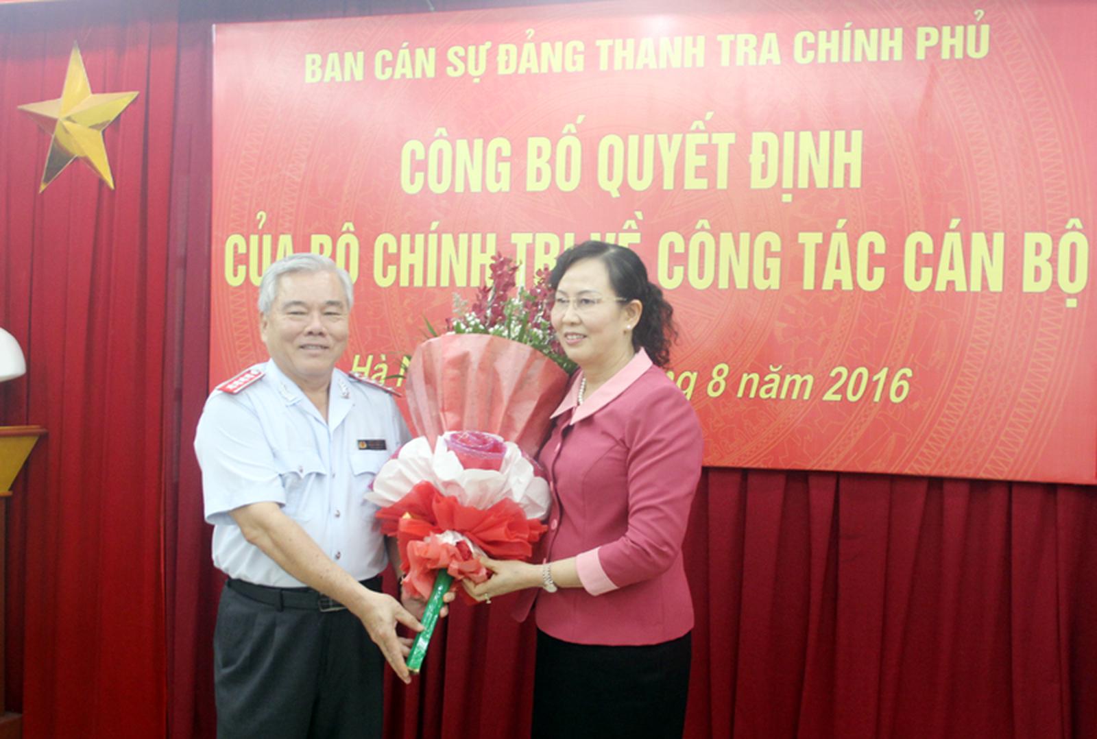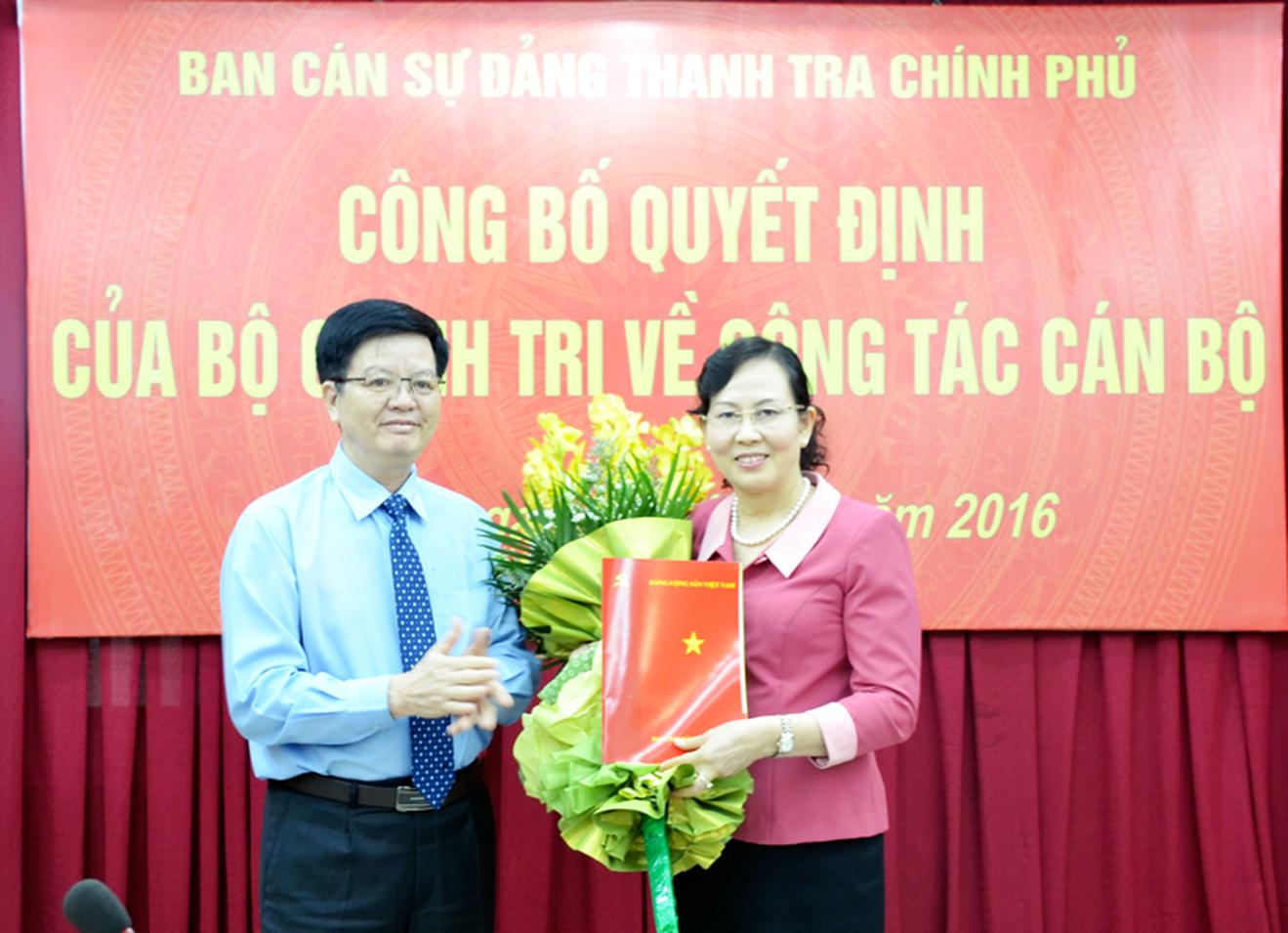 (Thanh tra) - Chiều ngày 17/8, Thanh tra Chính phủ (TTCP) đã tổ chức công bố quyết định của Bộ Chính trị đối với đồng chí Lê Thị Thủy, Ủy viên Trung ương Đảng, Phó Tổng Thanh tra giữ chức Phó Chủ nhiệm Ủy ban Kiểm tra Trung ương khóa 12, nhiệm kỳ 2016 - 2021.