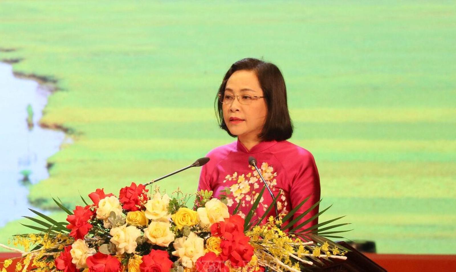Phó Chủ tịch Quốc hội Nguyễn Thị Thanh phát biểu tại buổi lễ. Ảnh: TTXVN.