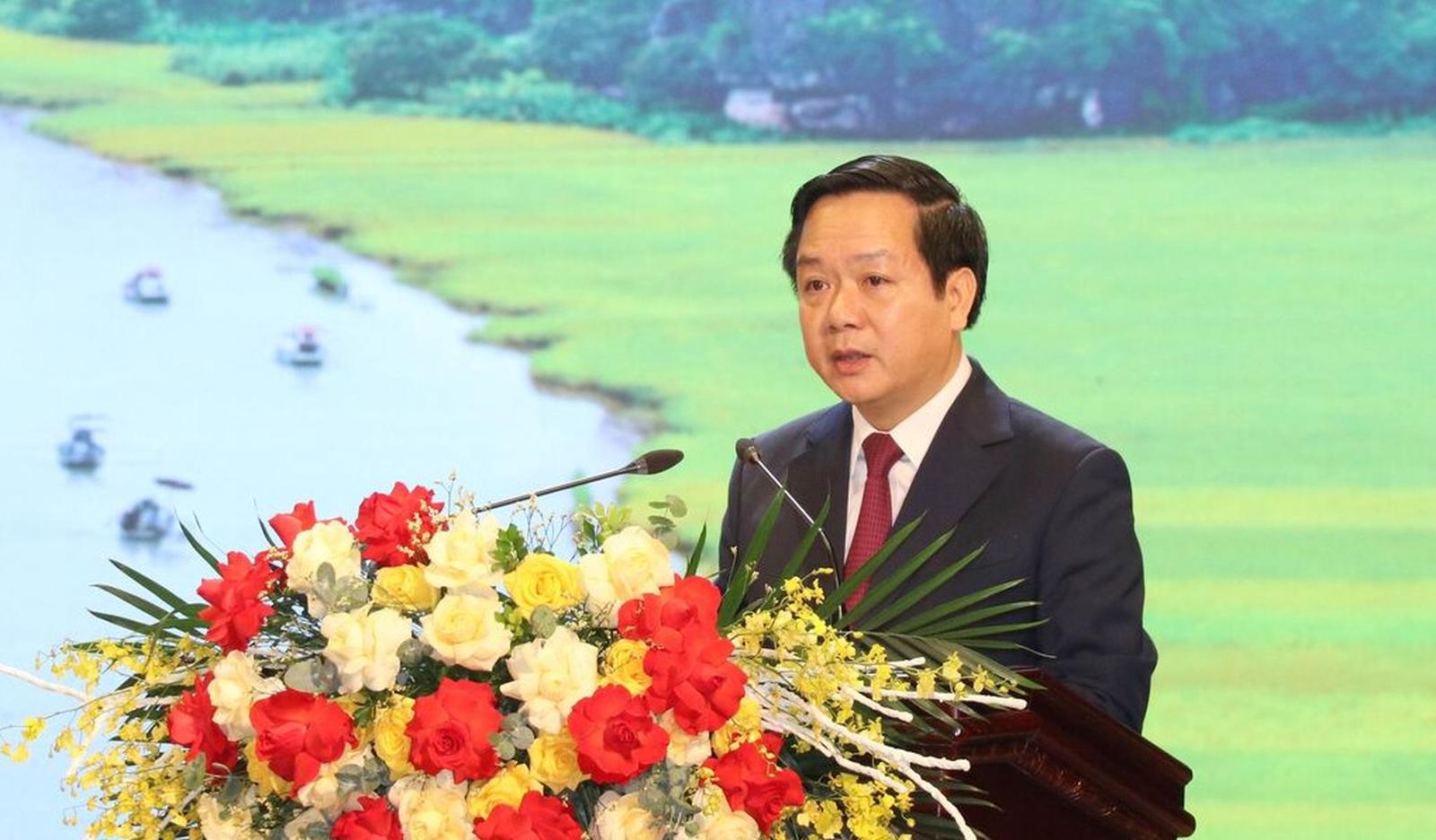 Chủ tịch UBND tỉnh Ninh Bình Phạm Quang Ngọc phát biểu tại biểu lễ. Ảnh: TTXVN