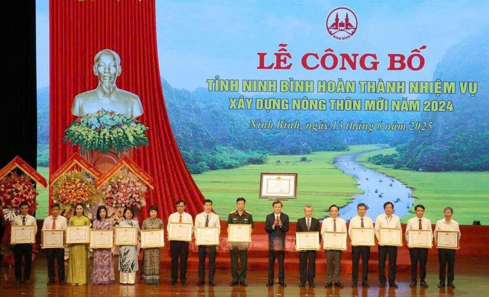 (Thanh tra) - Sáng 13/6/2025, tỉnh Ninh Bình long trọng tổ chức lễ công bố quyết định của Thủ tướng Chính phủ công nhận tỉnh hoàn thành nhiệm vụ xây dựng nông thôn mới năm 2024.