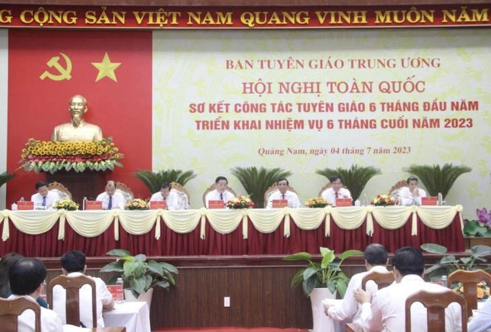 (Thanh tra)- Ngày 4/7, tại TP Tam Kỳ, dưới sự chủ trì của đồng chí Nguyễn Trọng Nghĩa, Bí thư Trung ương Đảng, Trưởng Ban Tuyên giáo Trung ương; Ban Tuyên giáo Trung ương tổ chức Hội nghị Toàn quốc sơ kết công tác tuyên giáo 6 tháng đầu năm, triển khai nhiệm vụ 6 tháng cuối năm 2023.