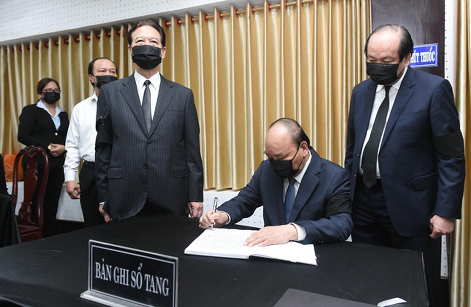 Ghi sổ tang, Thủ tướng Nguyễn Xuân Phúc viết: “Chính phủ, Thủ tướng Chính phủ vô cùng thương tiếc đồng chí Trương Vĩnh Trọng, nguyên Ủy viên Bộ Chính trị, nguyên Phó Thủ tướng Chính phủ. Đồng chí Trương Vĩnh Trọng với hơn 50 năm hoạt động cách mạng và công tác, trải qua nhiều chức vụ, cương vị công tác đã có nhiều cống hiến to lớn cho sự nghiệp cách mạng vẻ vang của Đảng, Nhà nước và nhân dân ta. Thủ tướng Chính phủ Nguyễn Xuân Phúc ghi sổ tang. Ảnh: VGP Đồng chí Trương Vĩnh Trọng, một người con ưu tú của quê hương Bến Tre anh hùng, một tấm lòng nhân hậu, tấm gương sáng về lối sống giản dị, phẩm chất đạo đức cách mạng cao quý, cần kiệm liêm chính, chí công vô tư, luôn trăn trở và hành động quyết liệt vì lợi ích của Đảng, của đất nước và nhân dân. Đồng chí Trương Vĩnh Trọng mất đi là một tổn thất đối với Đảng, Nhà nước, để lại niềm tiếc thương sâu sắc đối với tất cả chúng ta. Thay mặt Chính phủ, tôi xin gửi đến gia quyến đồng chí Trương Vĩnh Trọng lời chia buồn sâu sắc nhất. Xin vĩnh biệt đồng chí Trương Vĩnh Trọng, anh Hai Nghĩa kính mến”.
