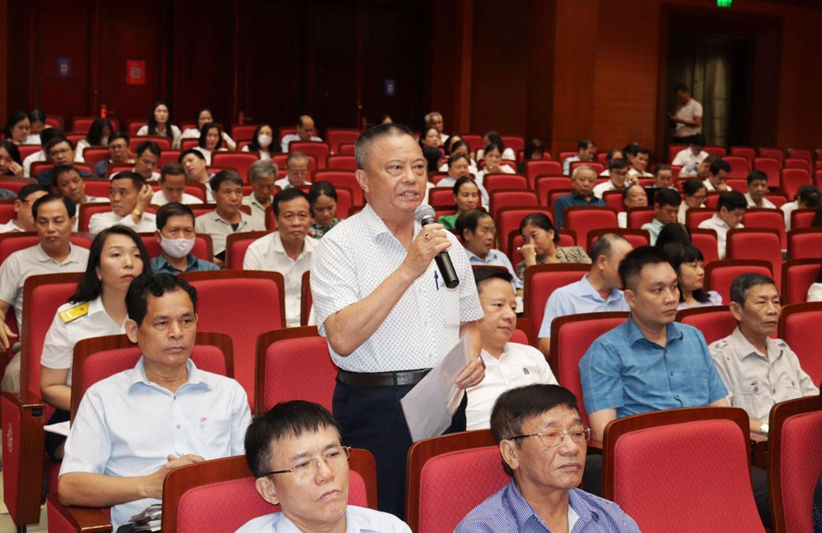 Cử tri quận Hồng Bàng phát biểu tại cuộc tiếp xúc cử tri. Ảnh: KT