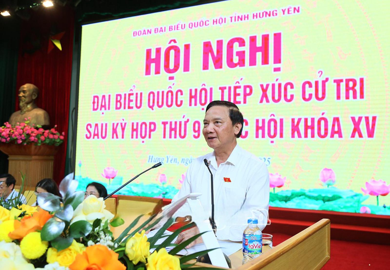 Phó Chủ tịch Quốc hội Nguyễn Khắc Định phát biểu tại hội nghị tiếp xúc cử tri tỉnh Hưng Yên. Ảnh: Mai Hoan