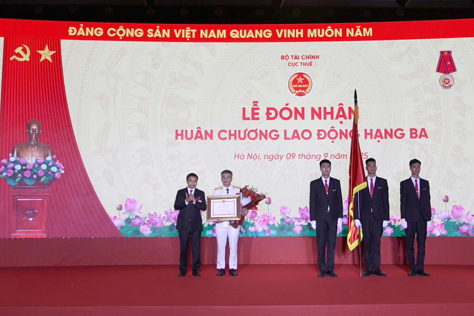 Cục Thuế đón nhận Huân chương Lao động hạng Nhất trong Lễ kỷ niệm 80 năm Ngày Truyền thống ngành Thuế. Ảnh: CT