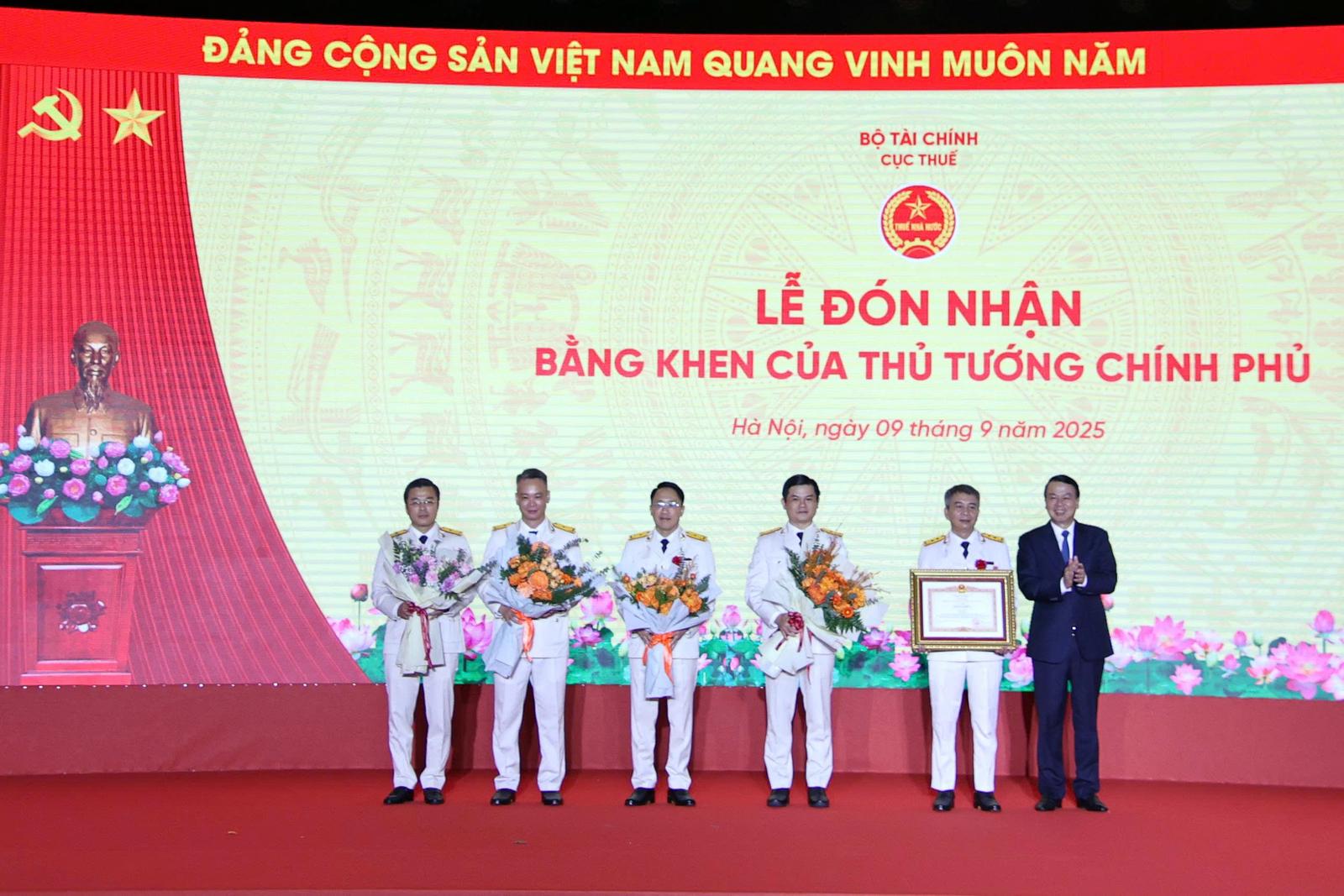 Buổi lễ cũng chứng kiến Lễ trao Bằng khen của Thủ tướng Chính phủ cho 5 tập thể thuộc Cục Thuế (Bộ Tài chính) đã có thành tích xuất sắc trong thực hiện nhiệm vụ thu ngân sách Nhà nước, góp phần quan trọng vào ổn định kinh tế vĩ mô, đảm bảo an sinh xã hội, tăng cường tiềm lực tài chính Quốc gia.