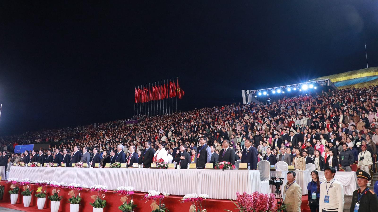 Lãnh đạo Trung ương, địa phương và người dân làm lễ chào chờ trước giờ khai mạc lễ kỷ niệm 130 năm Đà Lạt hình thành và phát triển. Ảnh: CTV