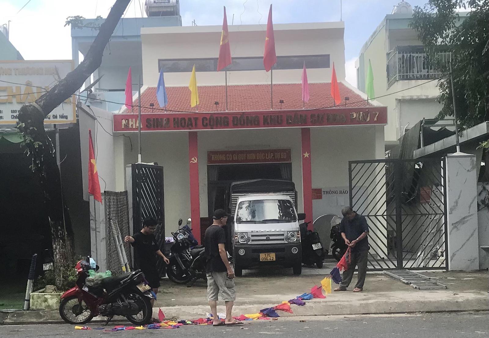 Nhiều nhà sinh hoạt cộng đồng trang trí cờ hoa rực rỡ. Ảnh: N.P
