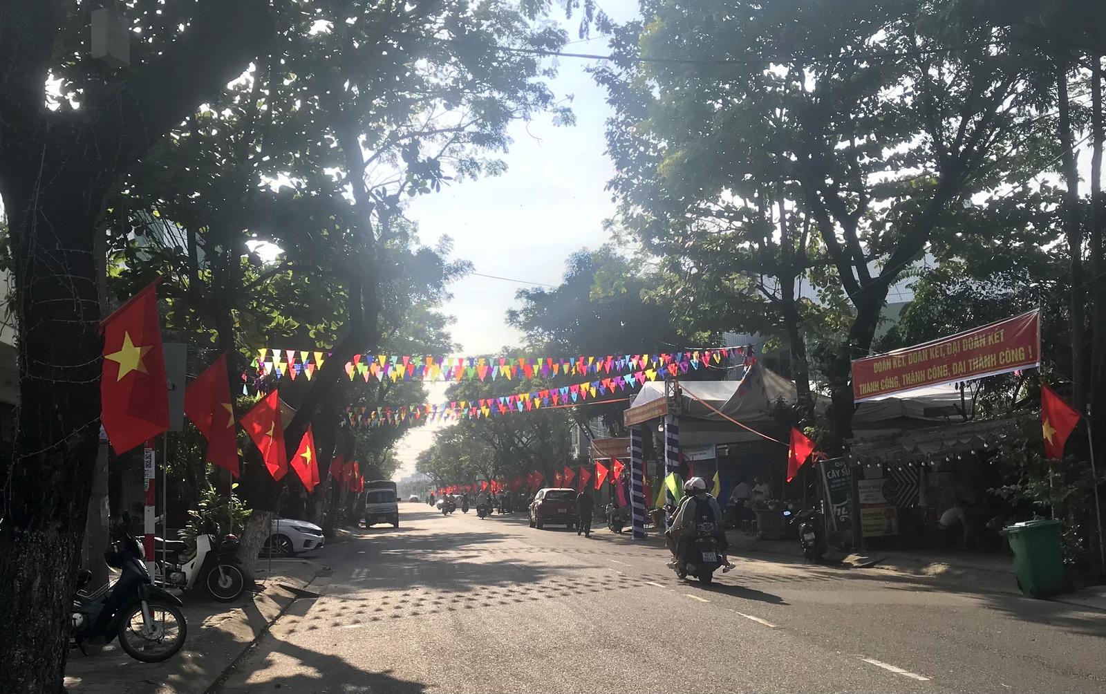 Đường phố rợp cờ đỏ sao vàng trong ngày hội toàn dân. Ảnh: N.P