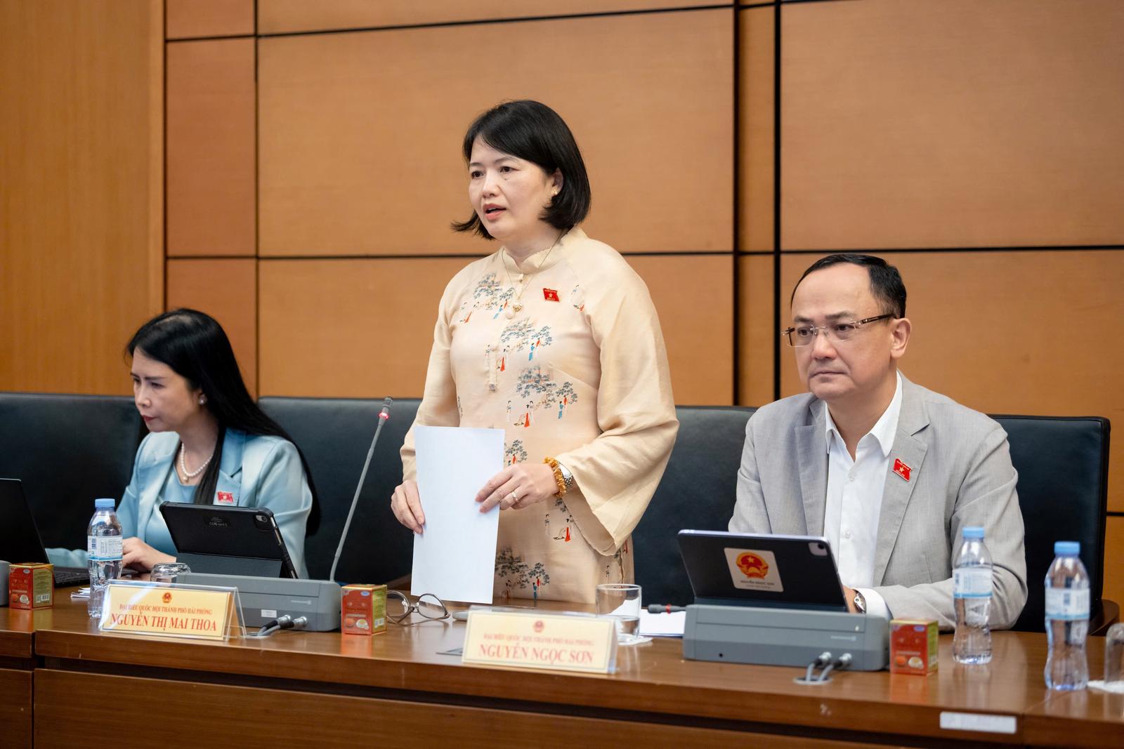 Đại biểu Quốc hội Nguyễn Thị Mai Thoa (đoàn TP Hải Phòng) đề nghị nghiên cứu giải pháp cấm hoặc hạn chế trẻ em sử dụng mạng xã hội đối với một số nền tảng phổ biến. Ảnh: Đ.X