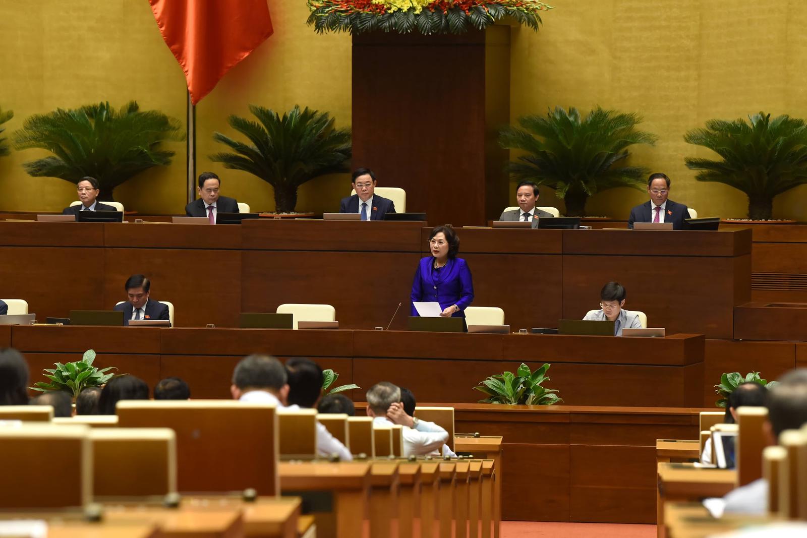 Thống đốc Ngân hàng Nhà nước Nguyễn Thị Hồng đăng đàn trả lời chất vấn ở Quốc hội chiều ngày 8/6.
