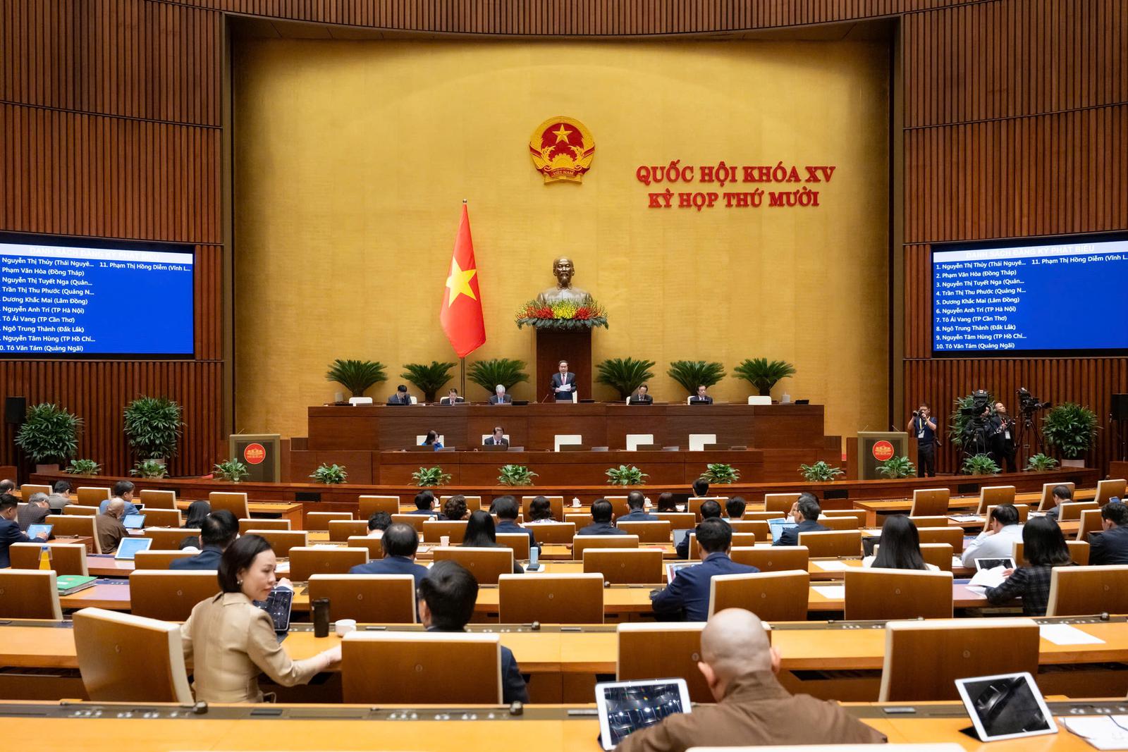 Quốc hội thảo luận ở hội trường về báo cáo công tác nhiệm kỳ 2021-2026 của Chính phủ. Ảnh: P.Thắng