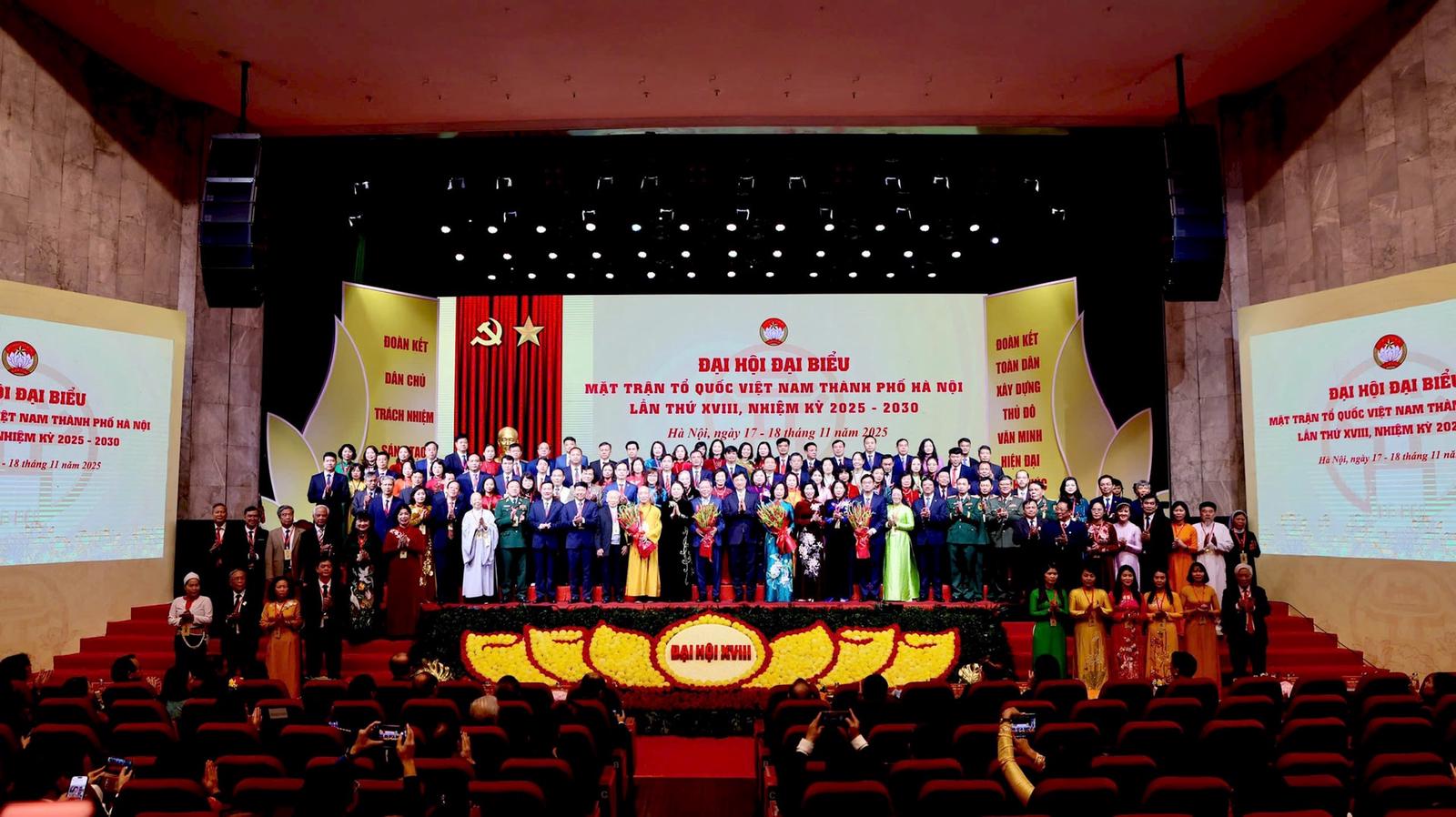 (Thanh tra) - Sáng 18/11, tại Cung Văn hóa Lao động Hữu nghị Việt Xô, Ủy ban Mặt trận Tổ quốc Việt Nam (MTTQ) TP Hà Nội tổ chức thành công Đại hội đại biểu MTTQ Việt Nam TP Hà Nội lần thứ XVIII, nhiệm kỳ 2025 - 2030. Đây là sự kiện chính trị - xã hội quan trọng của Thủ đô, diễn ra đúng dịp kỷ niệm 95 năm Ngày truyền thống MTTQ Việt Nam.