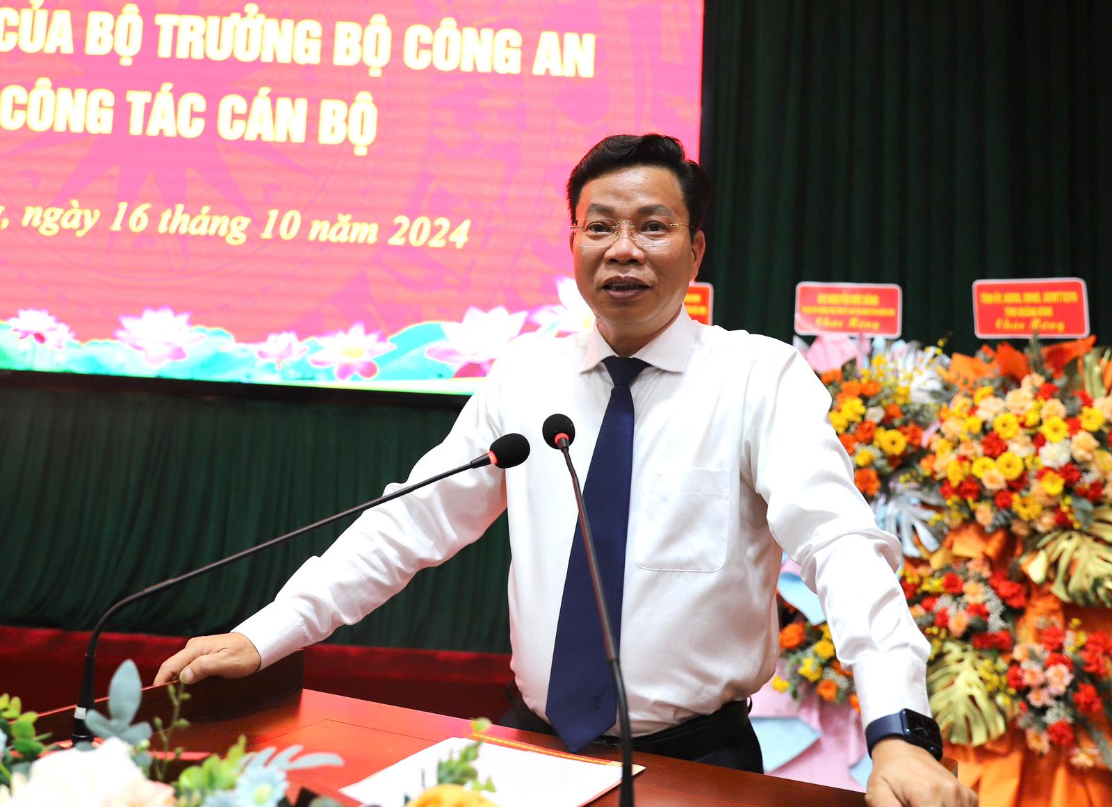 Tại buổi lễ, thừa ủy quyền của Bộ trưởng Bộ Công an, lãnh đạo Cục Tổ chức cán bộ đã Công bố Quyết định của Bộ trưởng Bộ Công an về điều động và bổ nhiệm Đại tá Hồ Song Ân (SN 1978); quê quán Quảng Nam, Phó Giám đốc Công an tỉnh Quảng Nam đến nhận công tác và giữ chức vụ Giám đốc Công an tỉnh Đắk Nông.