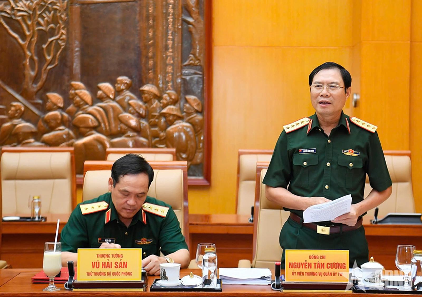 Đại tướng Nguyễn Tân Cương phát biểu tại hội nghị. Ảnh: qdnd.vn
