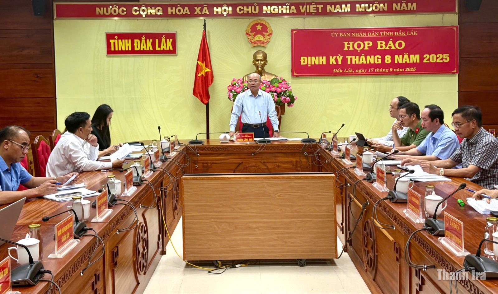 Chiều 17/9, UBND tỉnh Đắk Lắk tổ chức họp báo định kỳ tháng 8/2025 dưới sự chủ trì của ông Trương Công Thái, Phó Chủ tịch UBND tỉnh.