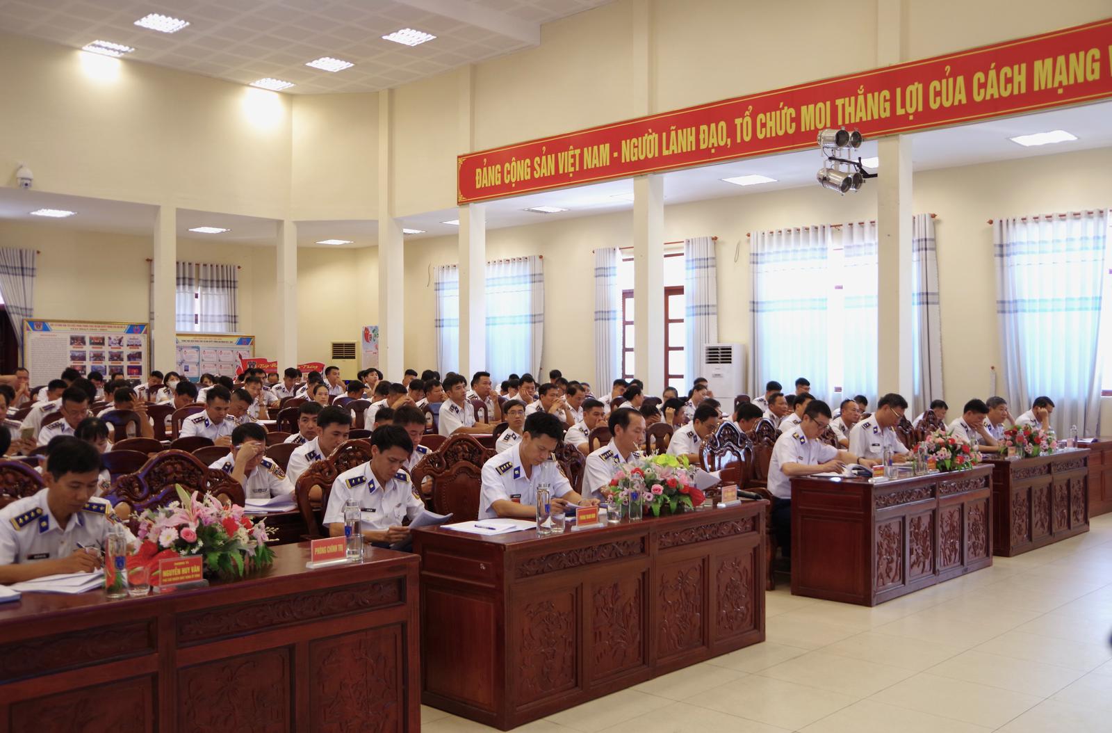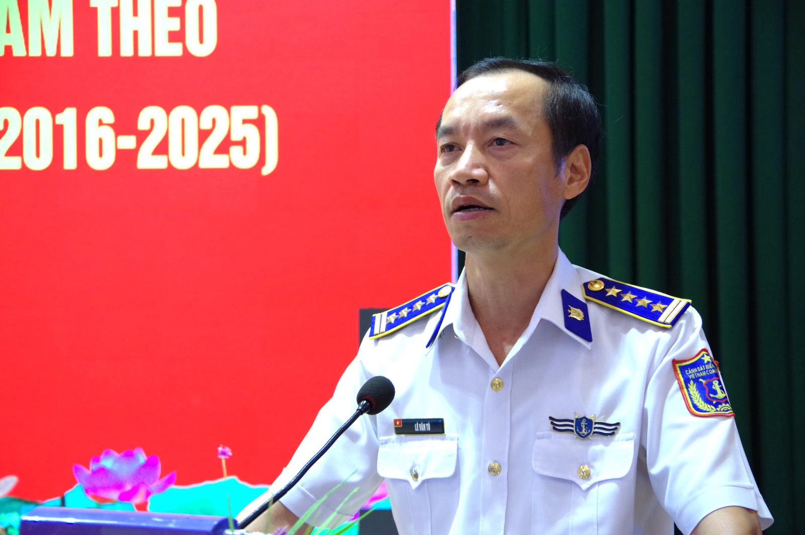 Đại tá Lê Văn Tú, Bí thư Đảng ủy, Chính ủy Bộ Tư lệnh Vùng Cảnh sát biển 3 phát biểu tại hội nghị. Ảnh: A.X