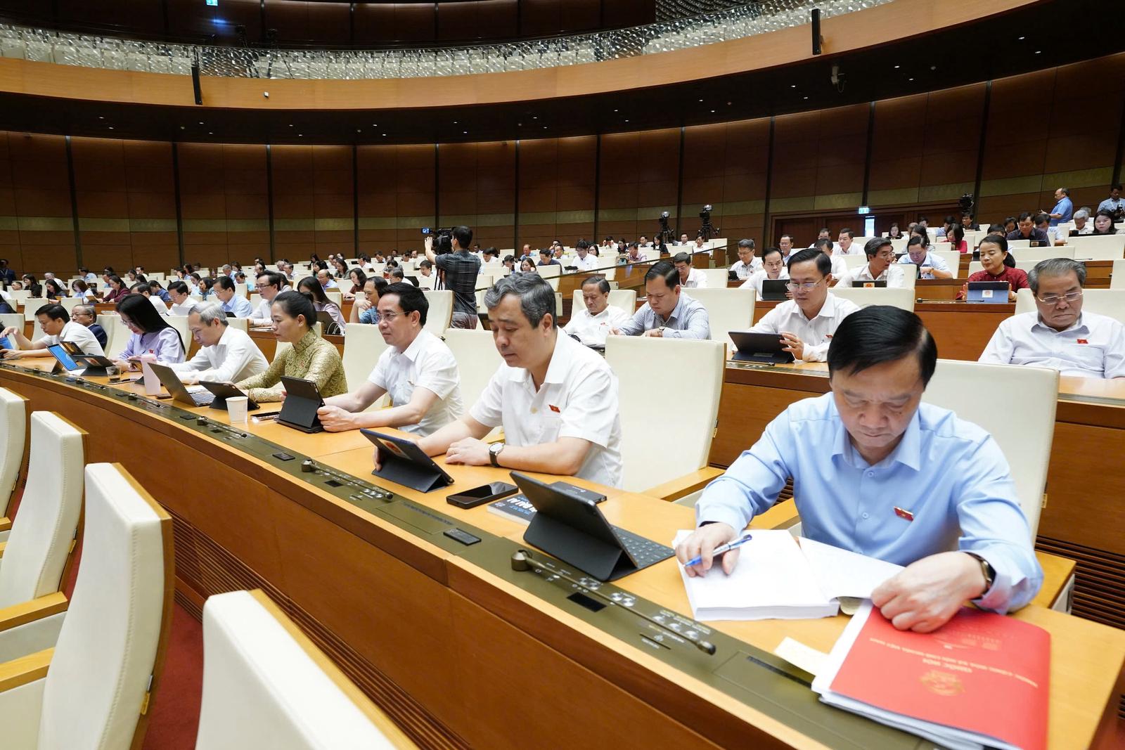 Quốc hội thảo luận ở hội trường Dự thảo Luật Thuế tiêu thụ đặc biệt sửa đổi. Ảnh: P.Thắng