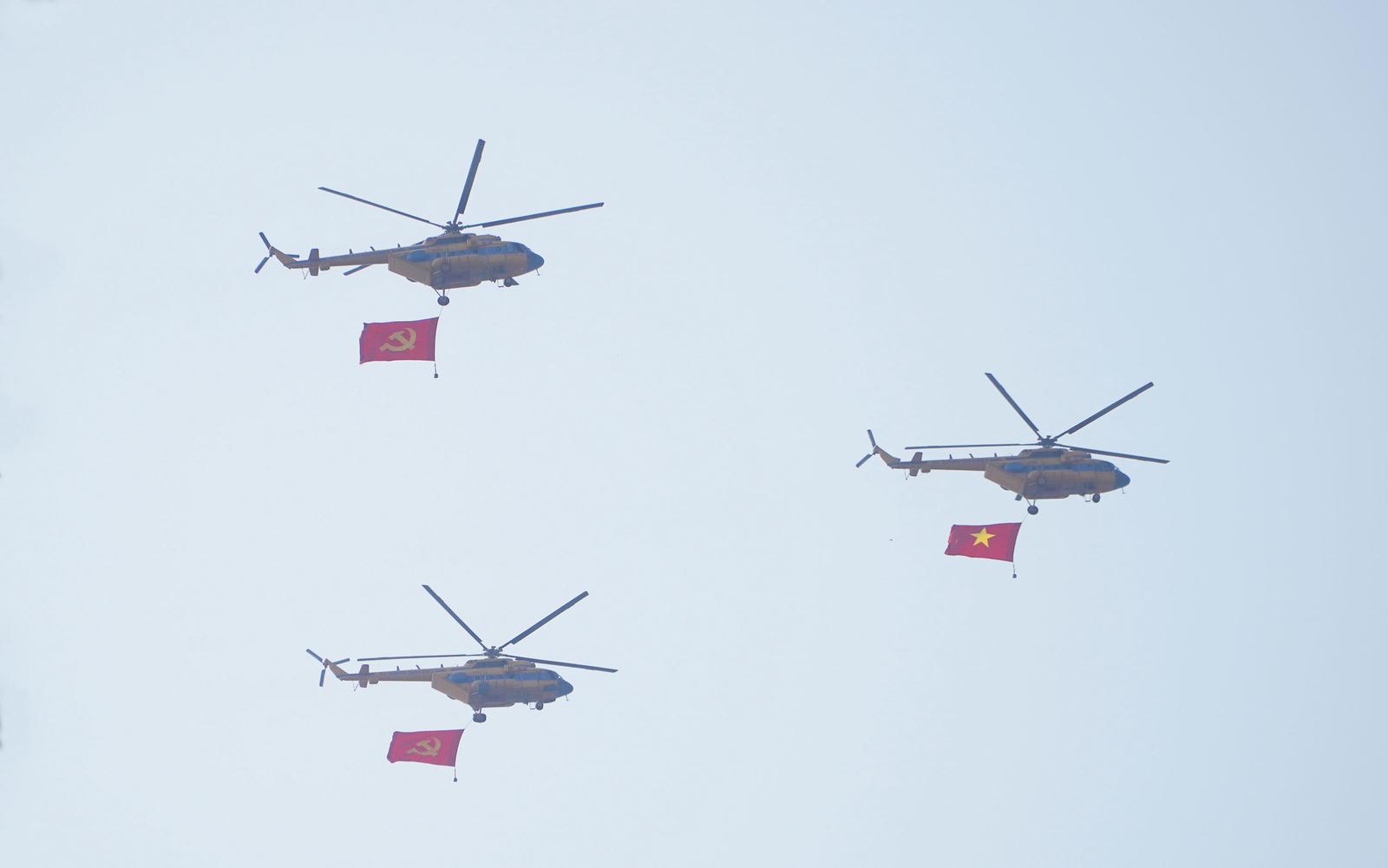 Đội hình trực thăng trình diễn ấn tượng trên bầu trời Thành phố Hồ Chí Minh. Ảnh: NH