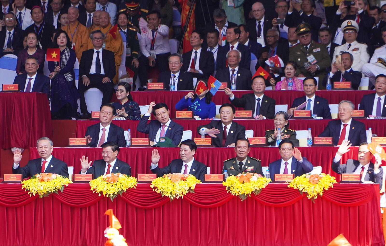 Tham dự buổi lễ có Tổng Bí thư Tô Lâm, Chủ tịch nước Lương Cường, Thủ tướng Phạm Minh Chính, Chủ tịch Quốc hội Trần Thanh Mẫn và các lãnh đạo, nguyên lãnh đạo Đảng, Nhà nước, Quốc hội, bộ, ngành, địa phương.