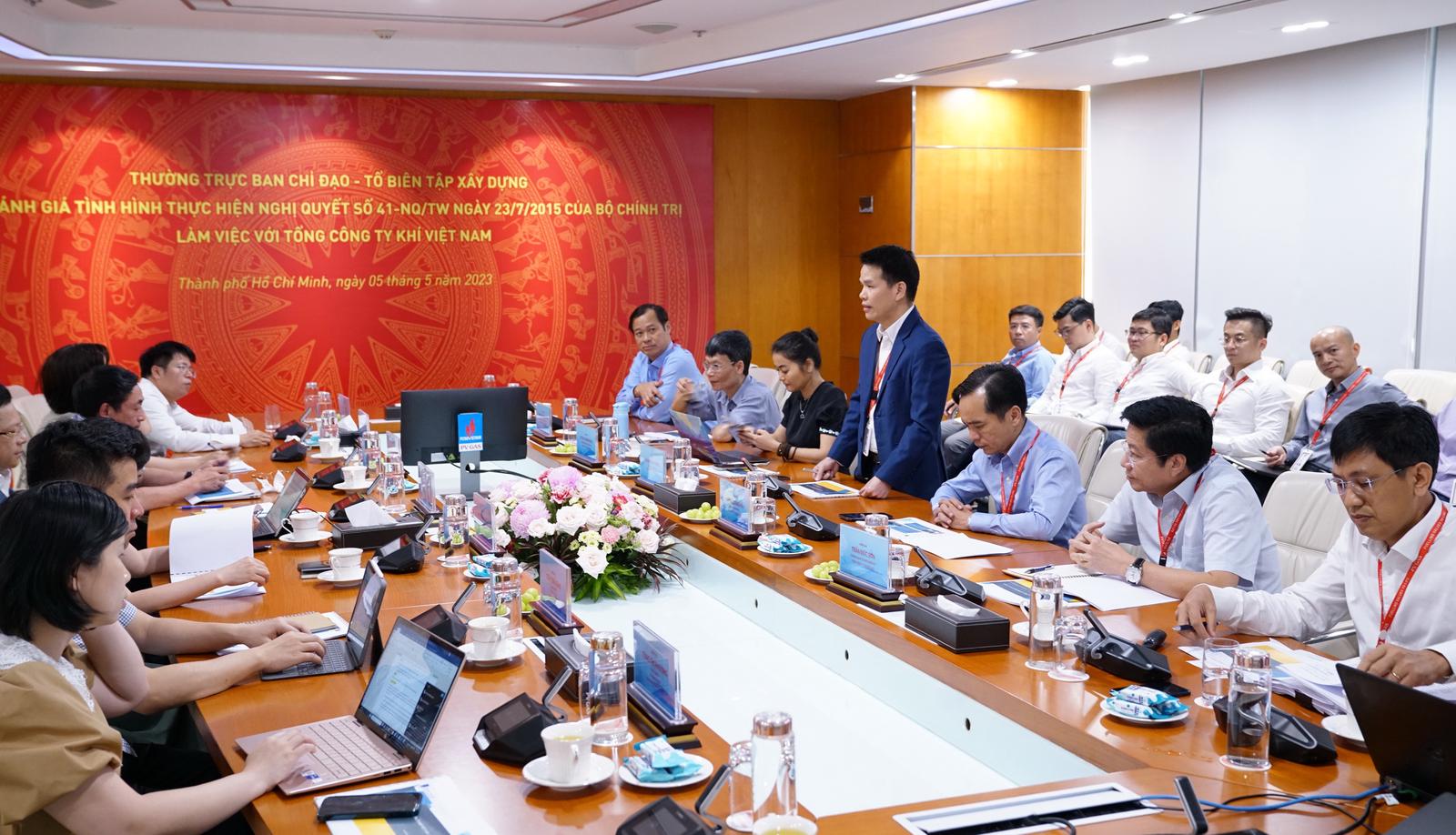 Báo cáo về kết quả triển khai thực hiện các chủ trương, chính sách phát triển ngành dầu khí Việt Nam theo yêu cầu tại Nghị quyết 41-NQ/TW của Bộ Chính trị, đại diện lãnh đạo PV GAS cho biết, PV GAS đã cơ bản thực hiện thành công và toàn diện các mục tiêu, nhiệm vụ được đề ra. Trong đó, bằng sự quyết tâm cao của cả hệ thống chính trị, sự lãnh đạo quyết liệt các tổ chức lãnh đạo thuộc Đảng và chính quyền cũng như sự nỗ lực hết mình của toàn thể đội ngũ CBCNV, PV GAS đã xây dựng hệ thống cơ sở hạ tầng ngành công nghiệp khí hoàn chỉnh, tham gia tích cực và khẳng định được uy tín trên thị trường kinh doanh sản phẩm khí quốc tế, góp phần đảm bảo an ninh năng lượng và an ninh lương thực quốc gia và xác lập nhiều kỷ lục về doanh thu, lợi nhuận, qua đó đóng góp đáng kể vào ngân sách Nhà nước, v.v...