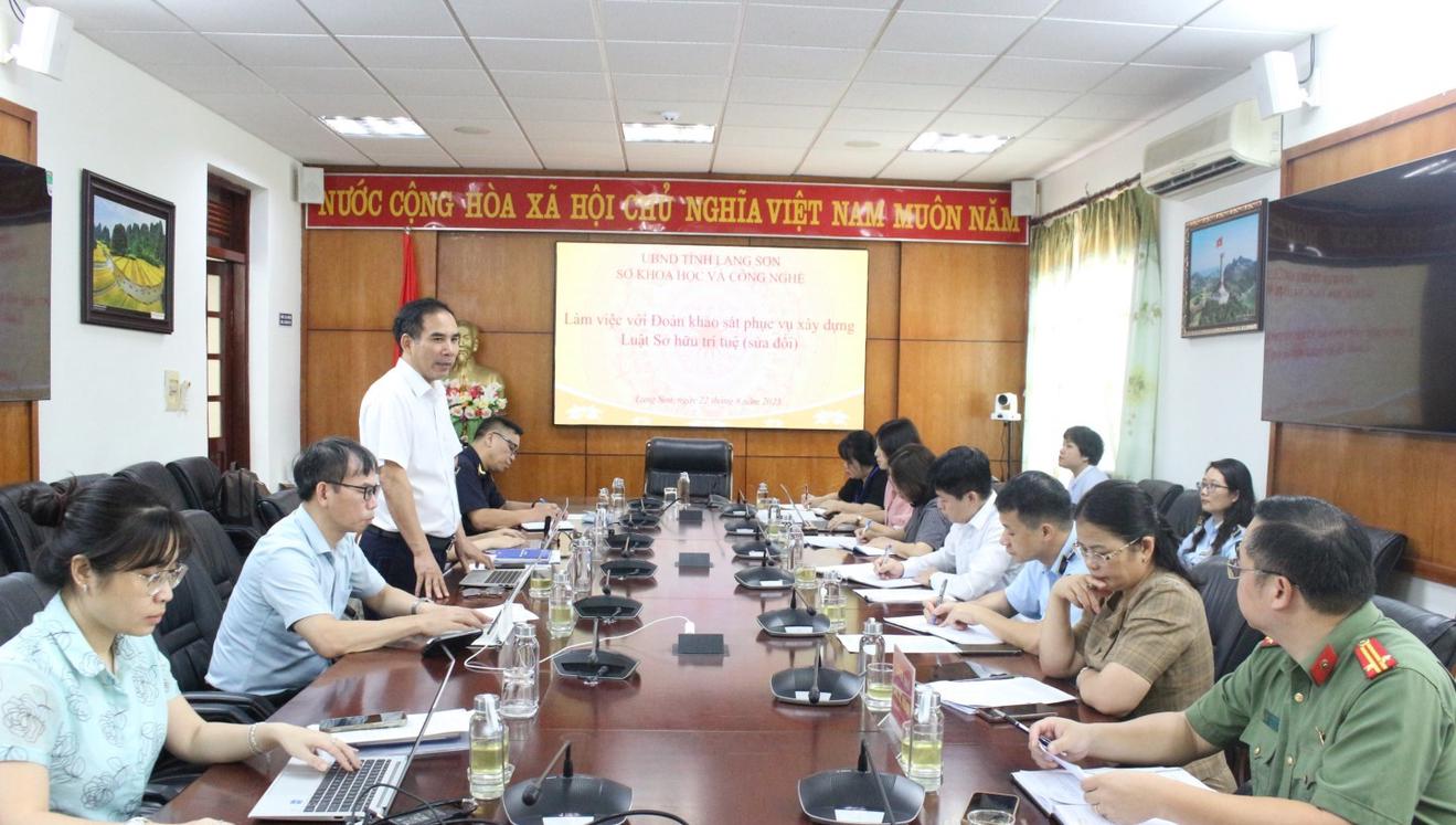 (Thanh tra) - Ngày 22/8, Đoàn khảo sát phục vụ xây dựng Luật Sở hữu trí tuệ (sửa đổi) do Phó Cục trưởng Cục Sở hữu trí tuệ (SHTT) Nguyễn Văn Bảy thuộc Bộ Khoa học Công nghệ làm Trưởng đoàn đã có buổi làm việc với Sở Khoa học và Công nghệ tỉnh Lạng Sơn.