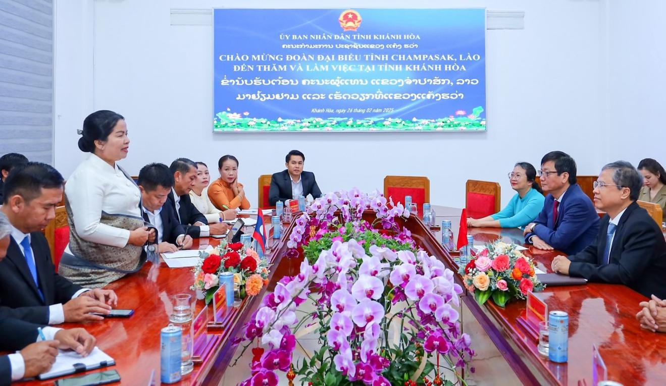 Thay mặt đoàn công tác, bà Vardsana Silima gửi lời cảm ơn đến Đảng bộ, chính quyền và nhân dân Khánh Hòa trong nhiều năm qua đã quan tâm, giúp đỡ, hỗ trợ cho tỉnh Champasak phát triển kinh tế - xã hội, quốc phòng an ninh và nhiều lĩnh vực khác.