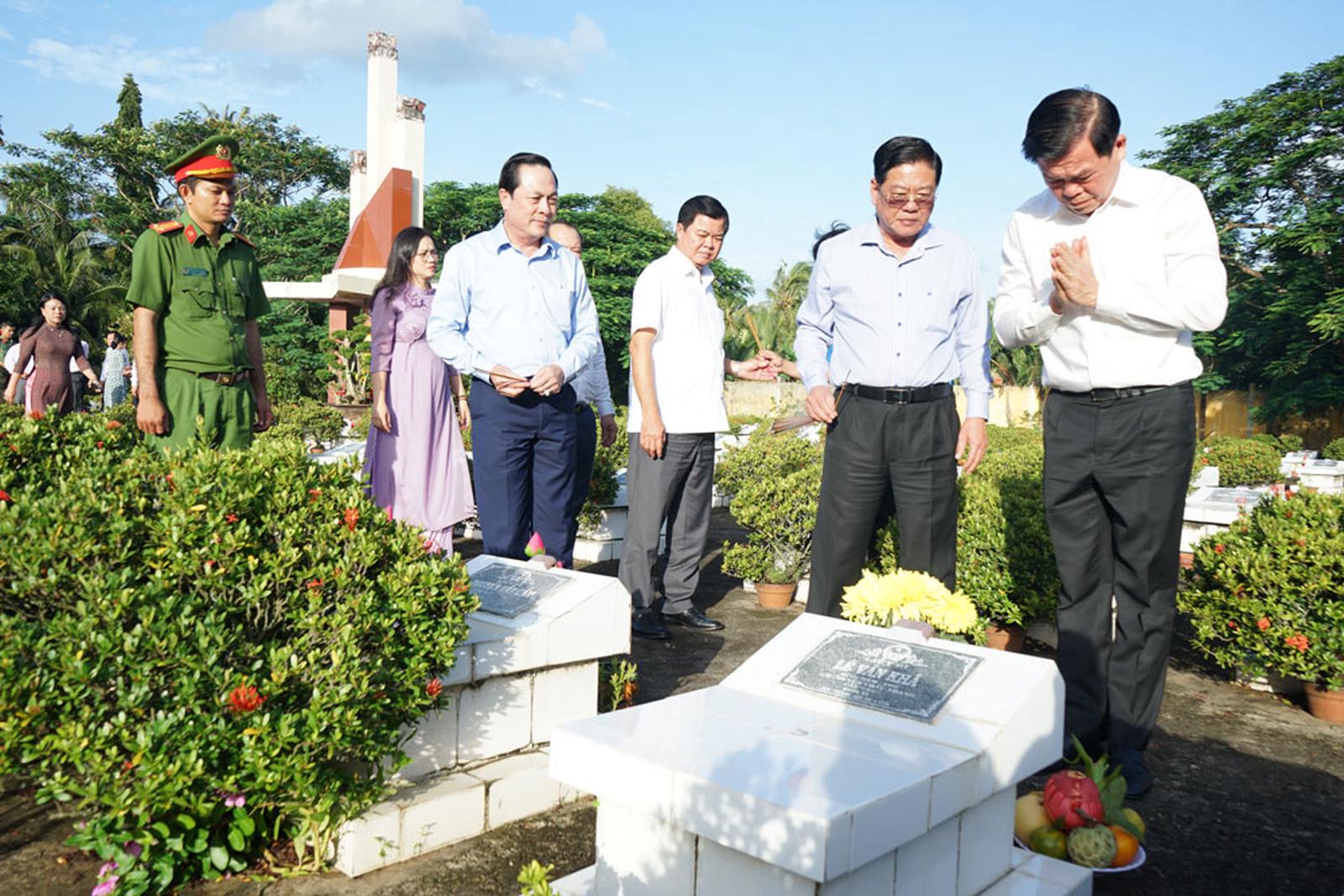 Đoàn cũng viếng mộ liệt sĩ Lê Văn Khá, được an táng tại nghĩa trang, và thăm, tặng quà tri ân gia đình liệt sĩ tại quê nhà. Liệt sĩ Lê Văn Khá (bí danh Tư Tổng), quê xã Phú An Hòa, Châu Thành, Bến Tre (nay là xã Phú Túc, Vĩnh Long), là cán bộ kiểm tra thuộc Ban Kiểm tra Tỉnh ủy Bến Tre, hy sinh ngày 26/6/1970 tại Tân Hào khi đang làm nhiệm vụ.