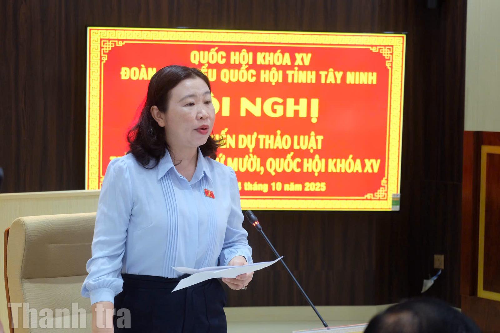 Phát biểu kết luận, Phó Trưởng đoàn chuyên trách Đoàn ĐBQH tỉnh Tây Ninh Lê Thị Song An đánh giá cao các ý kiến tâm huyết, thiết thực của đại biểu. Toàn bộ góp ý sẽ được Đoàn ĐBQH tỉnh Tây Ninh tổng hợp, nghiên cứu và báo cáo Quốc hội tại kỳ họp sắp tới, góp phần hoàn thiện hệ thống pháp luật, nâng cao hiệu quả quản lý nhà nước và phục vụ tốt hơn nhu cầu phát triển kinh tế - xã hội.
