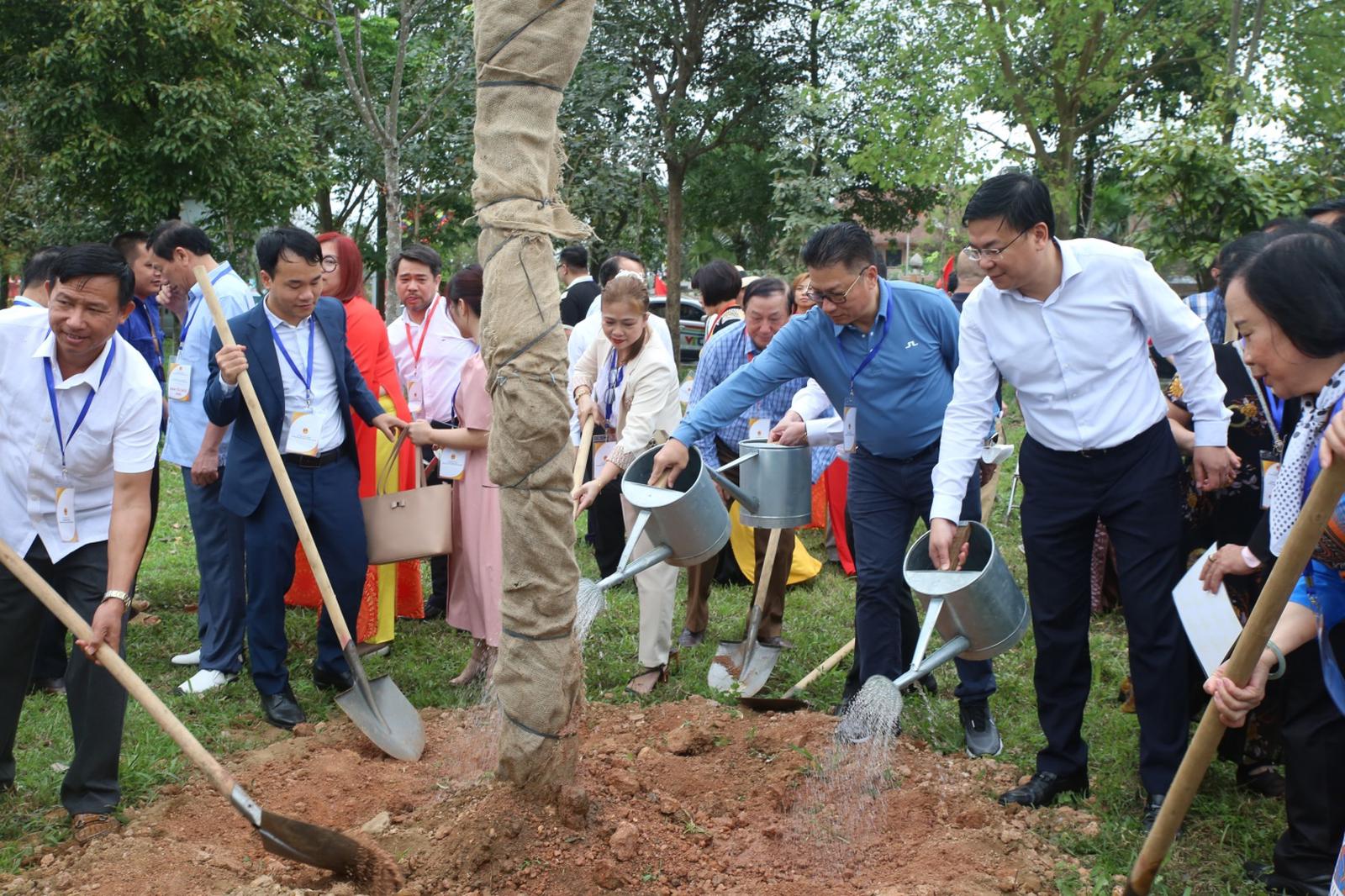 Sau nghi thức dâng hương tưởng niệm các Vua Hùng, đoàn kiều bào đã làm lễ báo công, tri ân công đức tổ tiên và trồng cây lưu niệm tại khu vực Đền Giếng.
