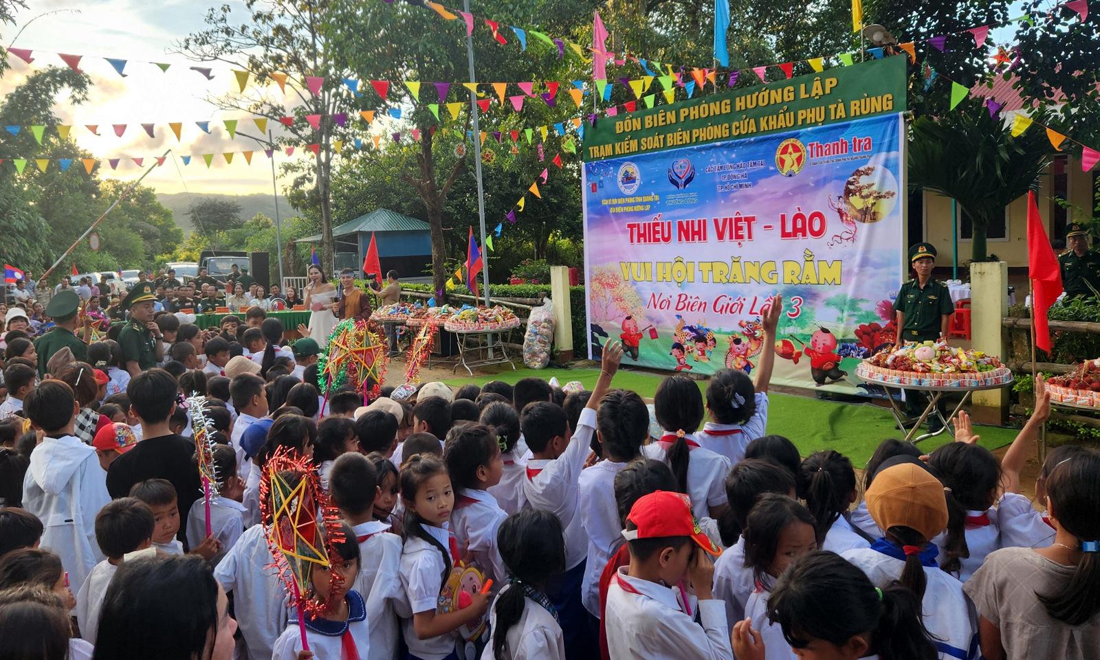 Báo Thanh tra phối hợp cùng Đồn Biên phòng Hướng Lập, các nhà tài trợ tổ chức chương trình Thiếu nhi Việt Lào - Vui hội trăng rằm năm 2024. Ảnh: Minh Tân