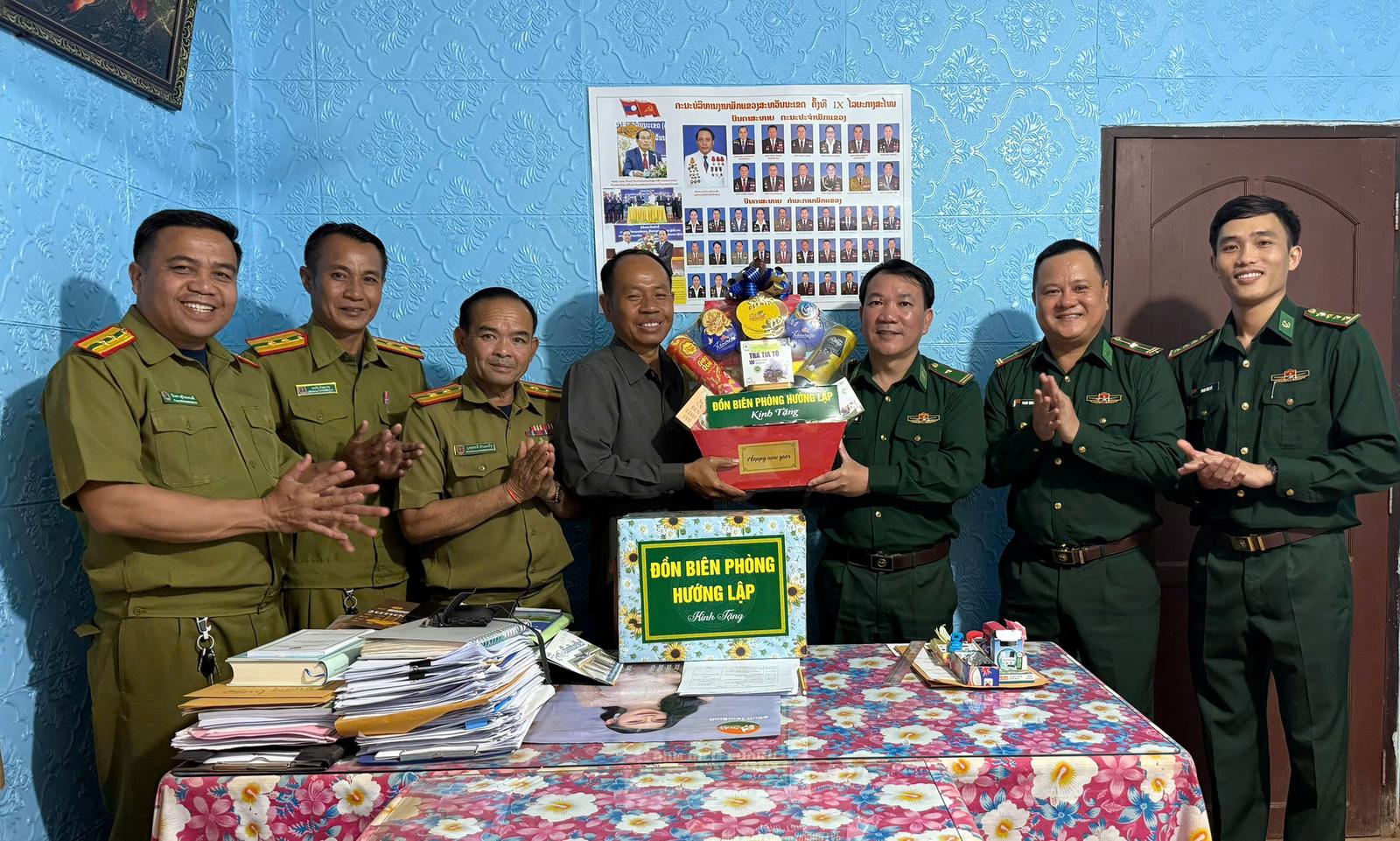 Cán bộ Đồn Biên phòng Hướng Lập thăm, chúc Tết cổ truyền Bunpimay cán bộ nước bạn Lào. Ảnh: Minh Tân