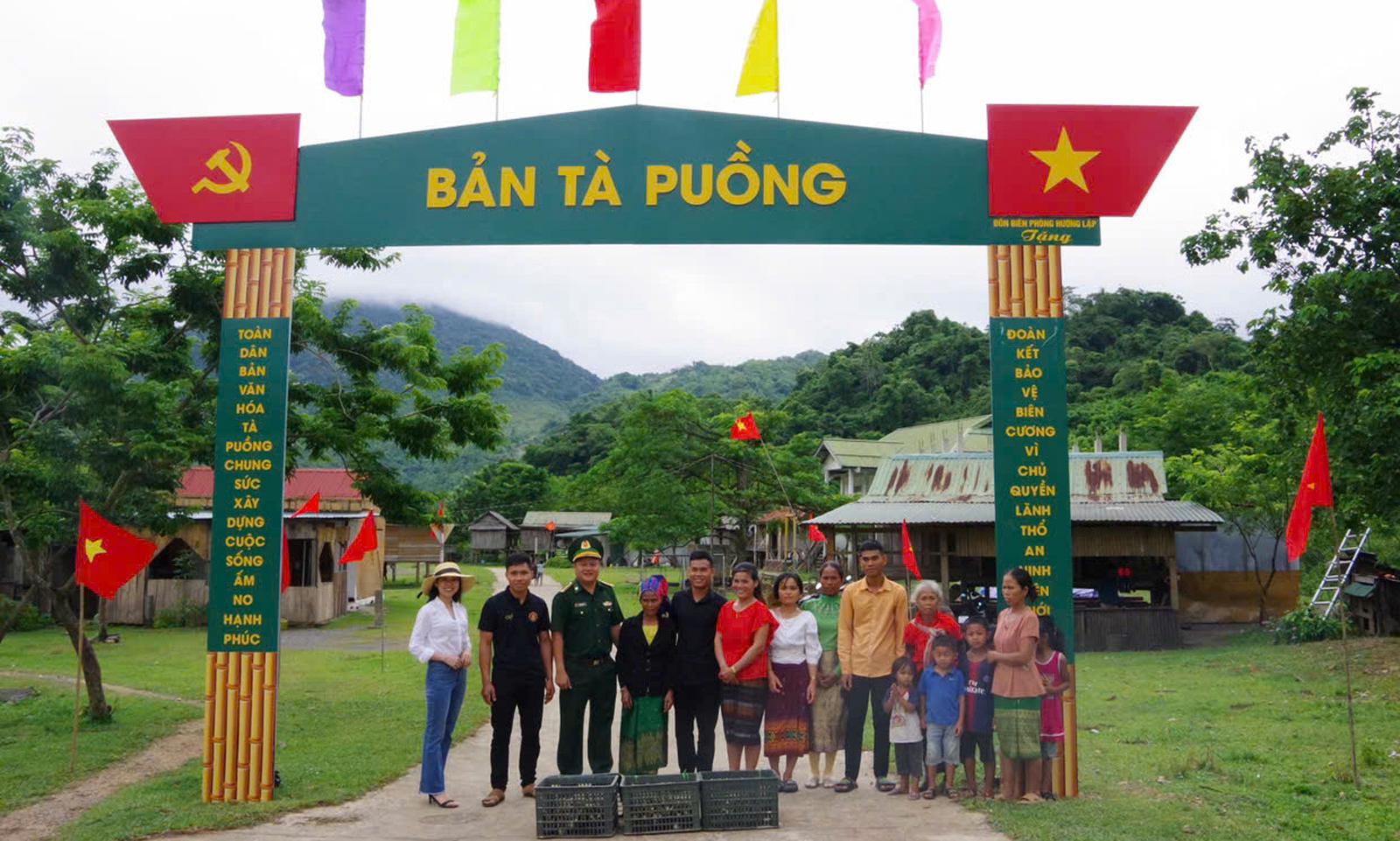Cán bộ Đồn Biên phòng Hướng Lập tặng con giống giúp bà con phát triển sinh kế tại bản Tà Puồng. Ảnh: Minh Tân