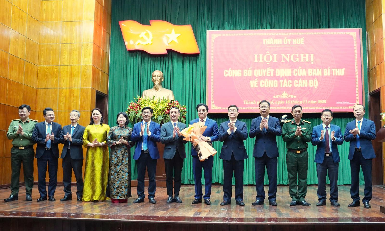 (Thanh tra) - Sáng ngày 16/11, Ban Thường vụ Thành ủy Huế tổ chức Hội nghị công bố Quyết định của Bộ Chính trị về công tác cán bộ. Ủy viên Ban Chấp hành Trung ương Đảng, Phó Trưởng Ban Tổ chức Trung ương Bùi Thị Quỳnh Vân dự và trao quyết định.