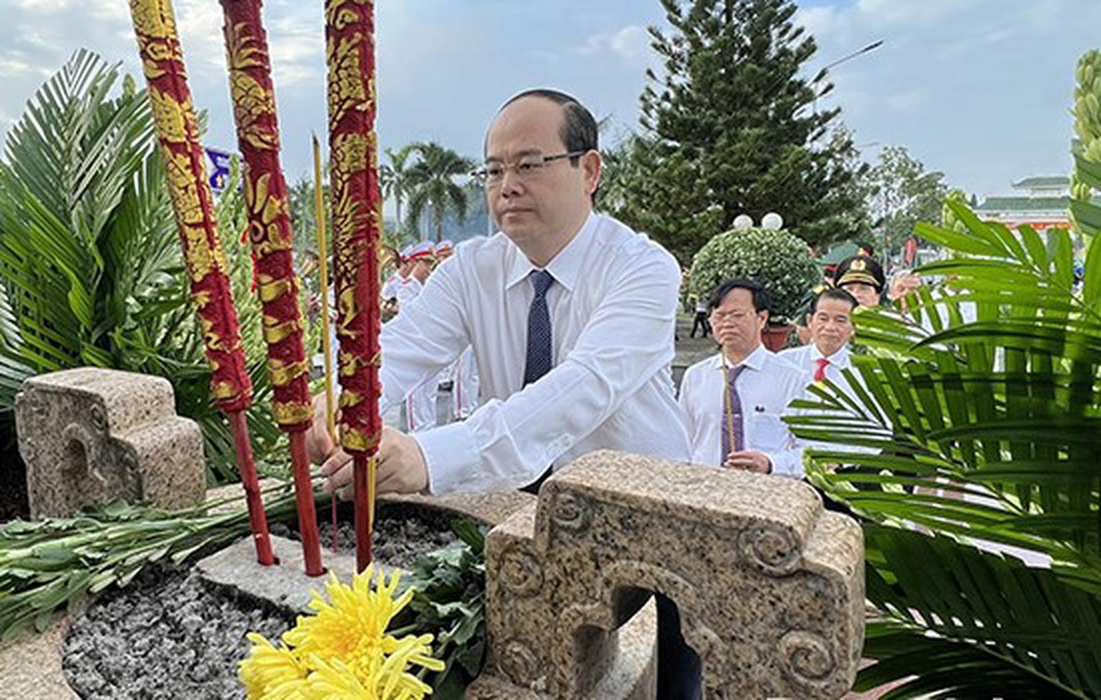 Phó Bí thư Tỉnh ủy, Chủ tịch UBND tỉnh Cao Tiến Dũng dâng hương Đài Liệt sĩ. Ảnh: NH