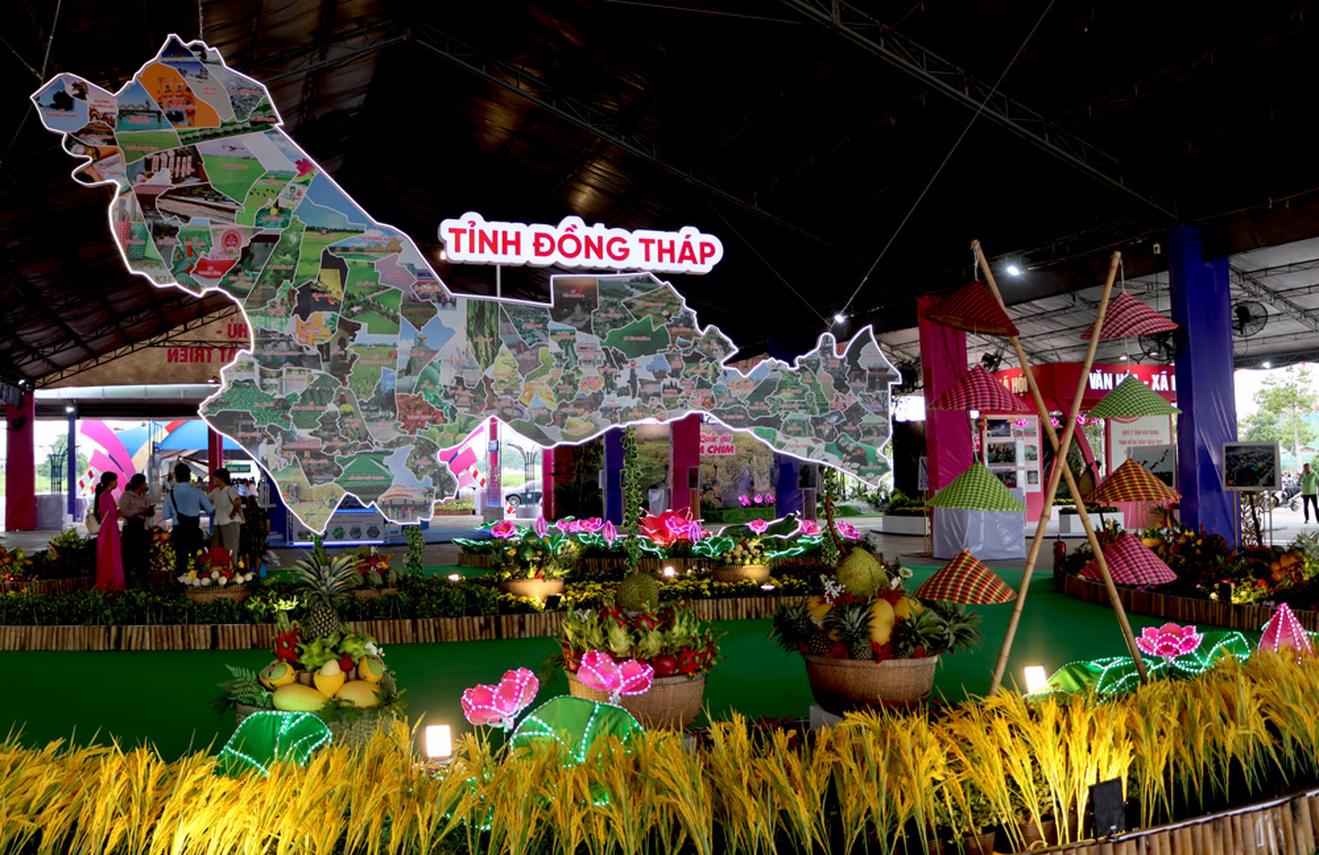Bản đồ Đồng Tháp được tạo từ hình ảnh 102 đơn vị hành chính cấp xã, chính quyền 2 cấp mới thu hút sự chú ý của đông đảo Nhân dân trong Triển lãm thành tựu của tỉnh. Ảnh: ĐT