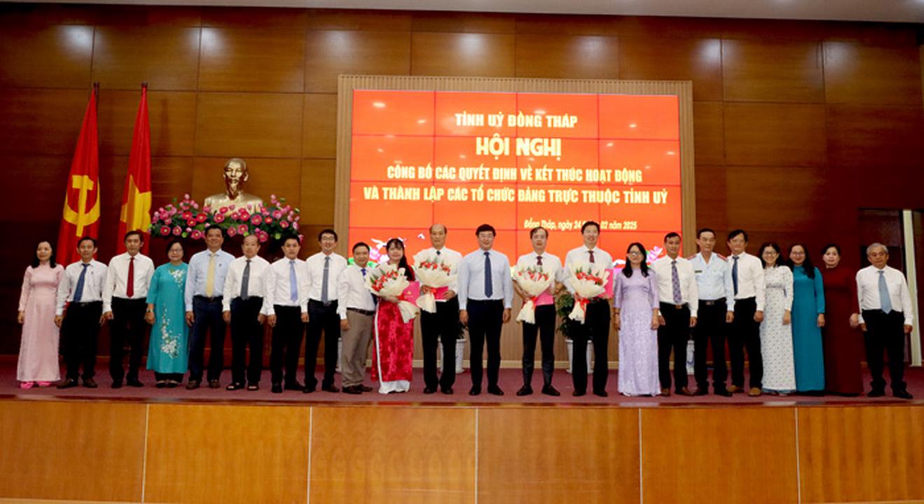 Tại hội nghị, Trưởng Ban Tổ chức Tỉnh ủy Đồng Tháp Trần Văn Cường công bố các quyết định của Ban Thường vụ Tỉnh ủy về việc kết thúc hoạt động của 8 đảng đoàn, 3 ban cán sự đảng gồm: Đảng đoàn HĐND tỉnh, Ủy ban Mặt trận Tổ quốc Việt Nam tỉnh, Hội Liên hiệp Phụ nữ Việt Nam tỉnh, Liên đoàn Lao động tỉnh, Hội Cựu chiến binh Việt Nam tỉnh, Hội Nông dân Việt Nam tỉnh, Hội Liên hiệp văn học nghệ thuật tỉnh, Liên hiệp các hội khoa học và kỹ thuật tỉnh; Ban Cán sự Đảng UBND tỉnh, Viện Kiểm sát Nhân dân tỉnh, Tòa án Nhân dân tỉnh. Ban Thường vụ Tỉnh ủy Đồng Tháp cũng đã quyết định kết thúc hoạt động của Đảng bộ Khối các cơ quan tỉnh.